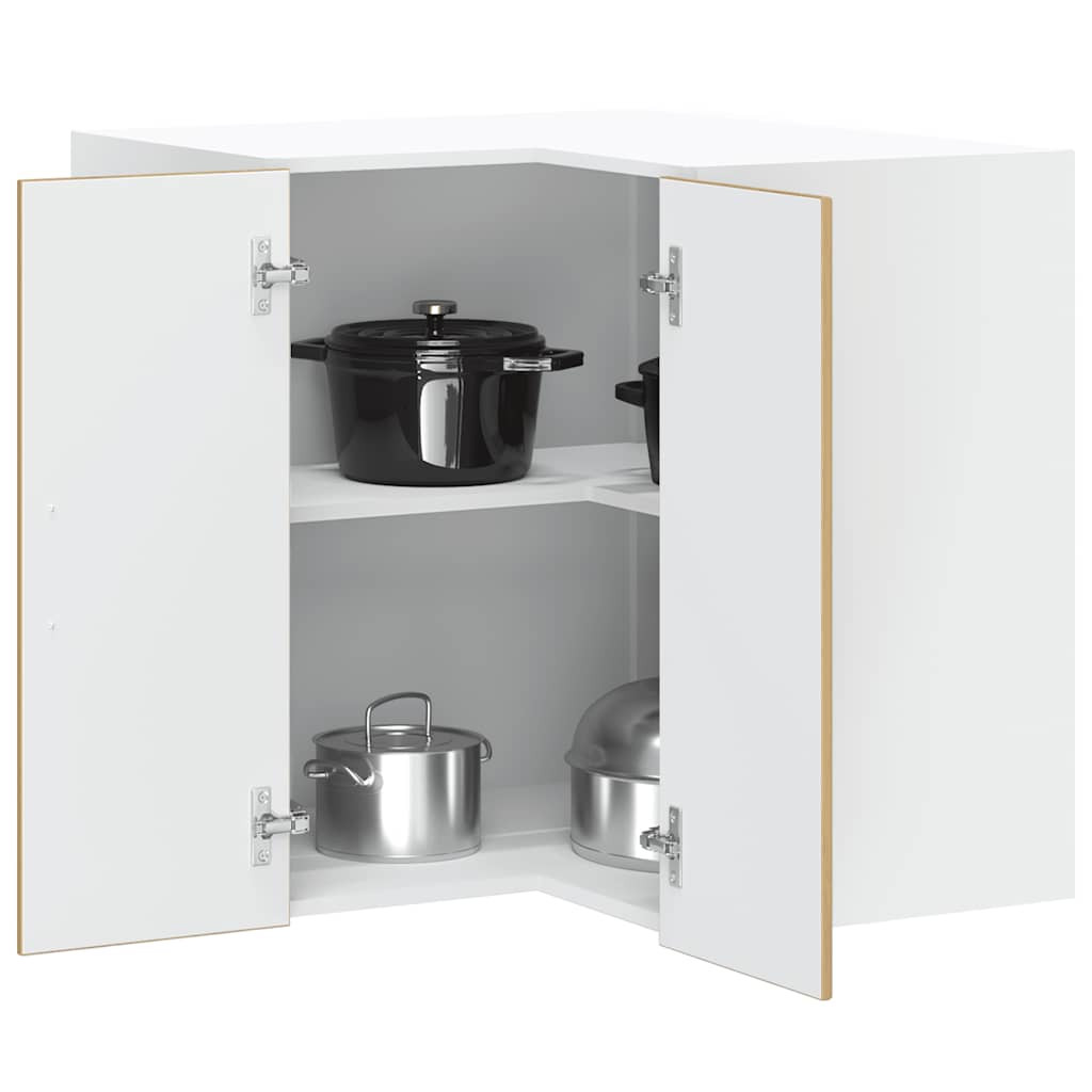 Ez a konyhai fali sarokszekrény arra szolgál, hogy optimalizálja a konyhai teret és díszítse otthonát! Stabil és tartós anyag: A szerelt fa tartós és stabil anyag sima felülettel, amely ellenáll a nedvességnek, a vetemedésnek és a hasadásnak, így megbízható választás különféle célokhoz.Bőséges tárolóhely: A konyhai fali sarokszekrény elegendő helyet kínál tálak, tányérok, edények és egyéb konyhai eszközök tárolására.Falra szerelhető kialakítás: Ez a konyhaszekrény falra szerelhető, így extra tárolóhelyet biztosít. Ezáltal maximalizálhatja a padlóterületet, és tisztán tarthatja a környezetét.Praktikus ajtók: Az ajtó segít fenntartani a tiszta és rendezett teret azáltal, hogy elrejti a konyhai eszközöket és a mögöttük lévő rendetlenséget.Könnyen karbantartható: Sima felületének köszönhetően a szekrény nedves ruhával könnyen tisztítható, és kevesebb gondozást igényel. Figyelem:A felborulás elkerülése érdekében ezt a terméket a mellékelt fali rögzítőeszközzel kell használni. Jó tudni:A falon belüli csavar(ok) és dugó(k) nem alaptartozékok. Keressen és használjon a falának megfelelő csavar(oka)t és dugó(ka)t. Ha bizonytalan, kérje szakember tanácsát. Gondosan olvassa el és kövesse a használati utasítás minden lépését.
