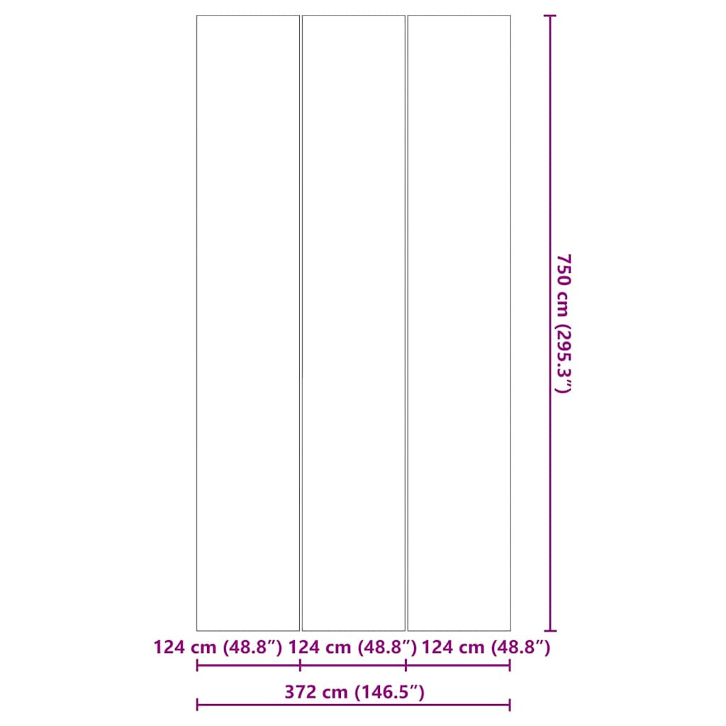 • Általános dimenziók: 750 x 372 x 0,1 cm (Ho x Szé x Ma)