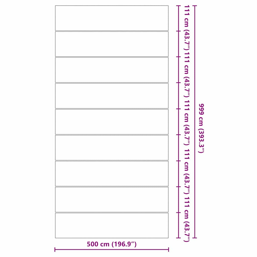 • Általános dimenziók: 999 x 500 x 0,1 cm (Ho x Szé x Ma)