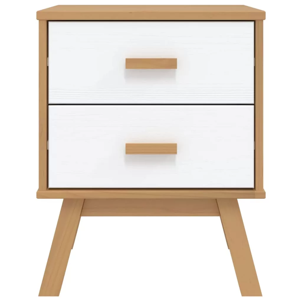 OLDEN fehér és barna tömör fenyőfa éjjeliszekrény