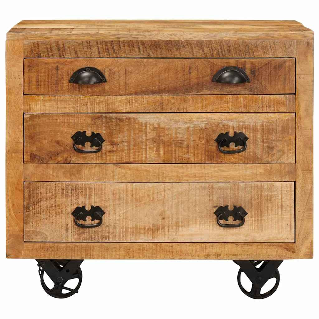 Ez a kerekes oldalszekrény egy kis rusztikus bájt csempész a nappalidba vagy étkeződbe, köszönhetően a masszív dizájnjának. Téglalap alakú, átlátszatlan felülete miatt igazi középponttá válik, miközben szuper praktikus is. A tömör mangóból készült szekrény kézműves minőséget nyújt, ami tartós és jól néz ki. A fa természetes erezete és színe meleg és hívogató hangulatot teremt. Tömör mangófa: Ebből a szekrényből kiváló minőségű, tömör mangófát használtak, egyedi erezeti mintákkal, amik csodás rusztikus érintést adnak neki. Tartós és megbízható tárolást kínál. Vas fogantyúk: Erős vas fogantyúi megkönnyítik a mindennapi használatot. Tökéletesen illeszkednek a rusztikus stílushoz, így könnyen nyithatók a fiókok. Bőséges tárolás: A tágas fiókokkal és rekeszekkel ez a szekrény mindenféle dolgok tárolására ideális, segítve ezzel a tered rendben tartását. Legyen szó étkező holmikról vagy nappali renden, ez a legjobb megoldás a rendetlenség csökkentésére. Könnyű összeszerelés: Az összeszerelése pofonegyszerű, csavarhúzóval és világos utasításokkal. Az állítható kerekek könnyítik meg a helyváltoztatást. Ápolási tanácsok: Tartsd szekrényedet szépen azzal, hogy rendszeresen letörlöd egy puha, száraz ruhával, és néha nedves ronggyal áttörlöd, ha szükséges. Kerüld a közvetlen napfényt, hogy a rusztikus báját megőrizhesse évekig.