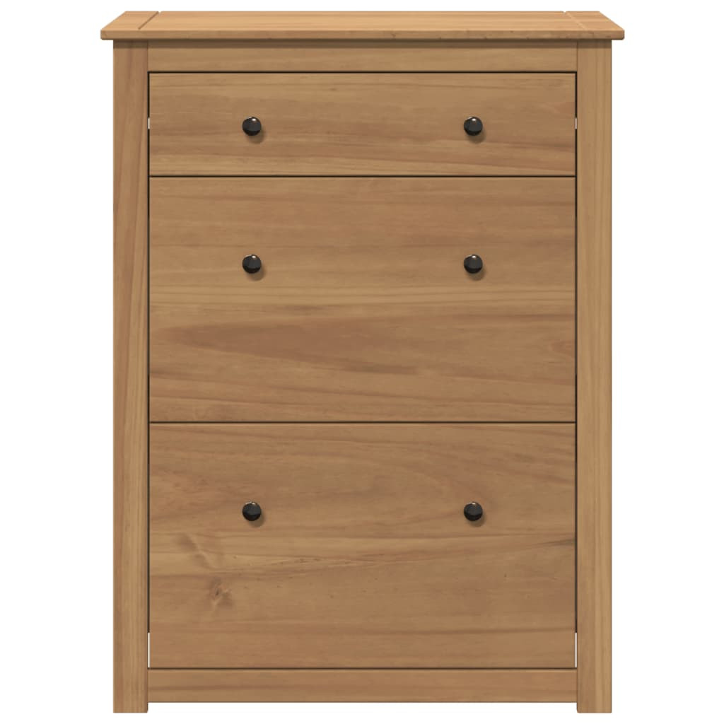 Tartsa cipőit rendben és pormentesen, egyszersmind teremtsen takaros környezetet otthonában ezzel a fa cipőszekrénnyel! Tömör fenyőfa: A tömör fenyőfa egy gyönyörű természetes anyag. A fenyőfa egyenes erezetű, a csomók pedig jellegzetes, rusztikus megjelenést biztosítanak az anyagnak. A tömör fenyőfából készült cipőszekrény strapabíró és masszív.Bőséges tárolóhely: Ez a cipőtároló 2 lehajtható ajtóval és 1 fiókkal rendelkezik a cipők és apró dolgok elrendezéséhez.Praktikus gombok: A cipőszekrény gombjai megkönnyítik a nyitását és csukását, miközben tovább növelik a szépségét.Könnyen karbantartható: A cipőtároló nedves ruhával könnyen tisztítható, és kevesebb karbantartást igényel. Figyelem:A felborulás elkerülése érdekében ezt a terméket a mellékelt fali rögzítőeszközzel kell használni.
