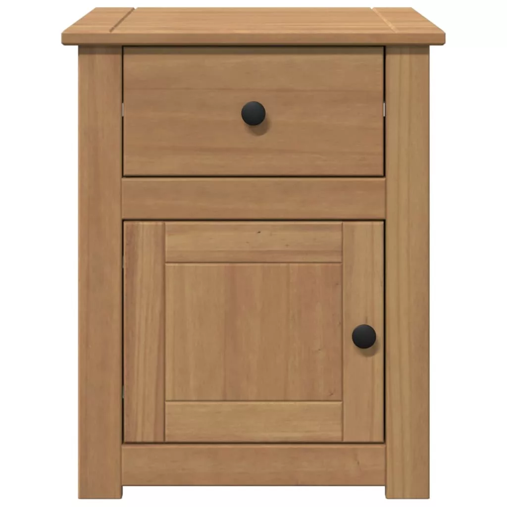 Ez a fából készült, stílusos dizájnnal ellátott éjjeliszekrény könnyen illeszkedik hálószobájába vagy nappalijába, és időtlen bájt kölcsönöz a belső térnek. Tömör fenyőfa: A tömör fenyőfa egy gyönyörű természetes anyag. A fenyőfa egyenes erezetű, a csomók pedig jellegzetes, rusztikus megjelenést biztosítanak az anyagnak. A tömör fenyőfából készült éjjeliszekrény strapabíró és masszív.Bőséges tárolóhely: Az éjjeliszekrény kényelmes fiókkal és rekesszel rendelkezik, így elérhető közelségben tarthatja a legfontosabb dolgokat.Könnyen karbantartható: Az éjjeliszekrény könnyen tisztítható nedves ruhával, és kevesebb karbantartást igényel.Praktikus gombok: Az éjjeliszekrény fiókjának gombjai megkönnyítik a fiók nyitását és csukását, miközben tovább növelik a szépségét. Figyelem:A felborulás elkerülése érdekében ezt a terméket a mellékelt fali rögzítőeszközzel kell használni.