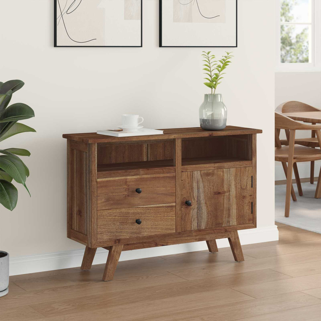 Ez a tálalószekrény vintage stílusú tárolási megoldás, ami ideális a nappali és étkező számára. Az időtlen eleganciát a szilárd tíkfa szerkezete adja meg, ami bonyolult természetes faerezet mintázatokkal rendelkezik, melegséget és karaktert hozva bármilyen térbe. A négyzet alakú kialakítás sok lehetőséget kínál tányérok, textíliák vagy dísztárgyak tárolására, ami feldobja a szoba hangulatát, így praktikus és szép is. Szilárd Tíkfa Kivitelezés: Gondosan kidolgozott, masszív szilárd tíkfabútor, amely tartós és stabil megoldást nyújt az otthonodban. Gazdag, természetes tónusai melegséget adnak, míg a prémium kidolgozás biztosítja, hogy évekig megőrzi a szerkezetét – stílusos és megbízható darab az otthonodban. Bőséges Tárolási Kapacitás: A sok fiókkal és polccal készült tálalószekrény bőven ad helyet a tárolásra; legyen az prémium porcelán, vintage gyűjtemények vagy hétköznapi tárgyak, a praktikus kialakítása mindezt kényelmesen elérhetővé teszi. Vintage Dizájn Elemei: Merülj el a múlt bájában ezzel az elegáns bútordarabbal, amely vintage dizájnjával emlékeztet a régmúlt szépségeire. Finoman csiszolt, sima felületével és természetes tíkfa színével tökéletesen passzol a klasszikus és modern belső terhez, és sokféle dekorációs lehetőséget kínál. A szépséget és a funkcionalitást ötvözi. Ápolási és Karbantartási Tippek: A tálalószekrény jó állapotának megőrzése könnyű; csak kerüld az abrazív tisztítószereket, és válassz enyhe tisztítószereket puha kendővel, hogy megőrizd a fa természetes fényét. Ezen egyszerű tippek betartásával a tálalószekrény hosszú éveken keresztül a kedvenc bútordarabod marad. Praktikus és Stílusos: Ez a tálalószekrény nem csak a tárolásról szól, hanem az észrevételről is! A masszív fa lábak és az elegánsan megtervezett fogantyúk hozzájárulnak a szoba összképéhez, jól illeszkedik bármilyen dekorációhoz. Akár a fal mellett, akár középpontként áll, a tálalószekrény különleges karaktert ad a választott helyiségnek.