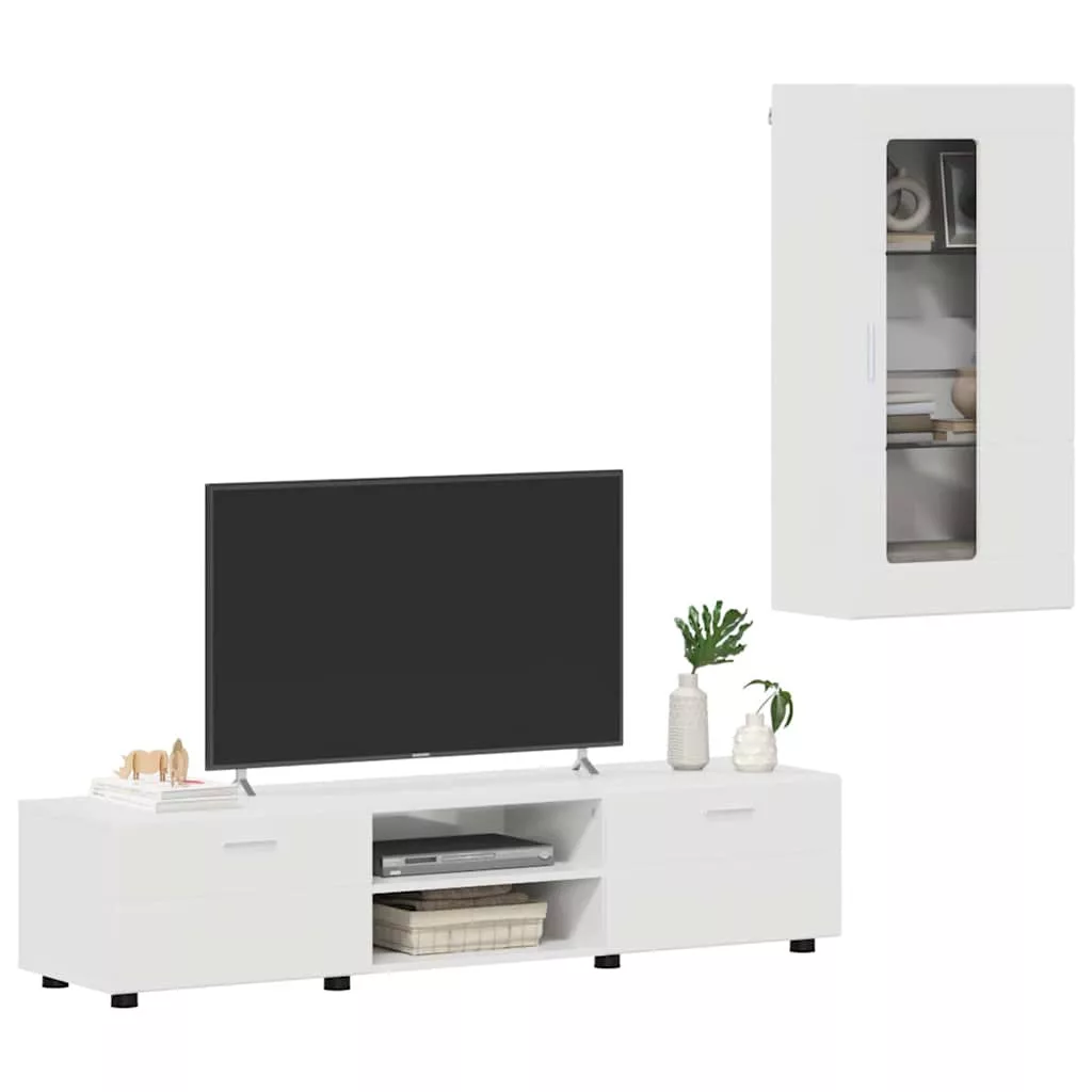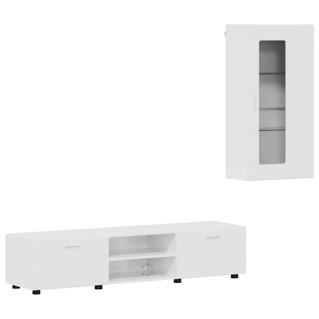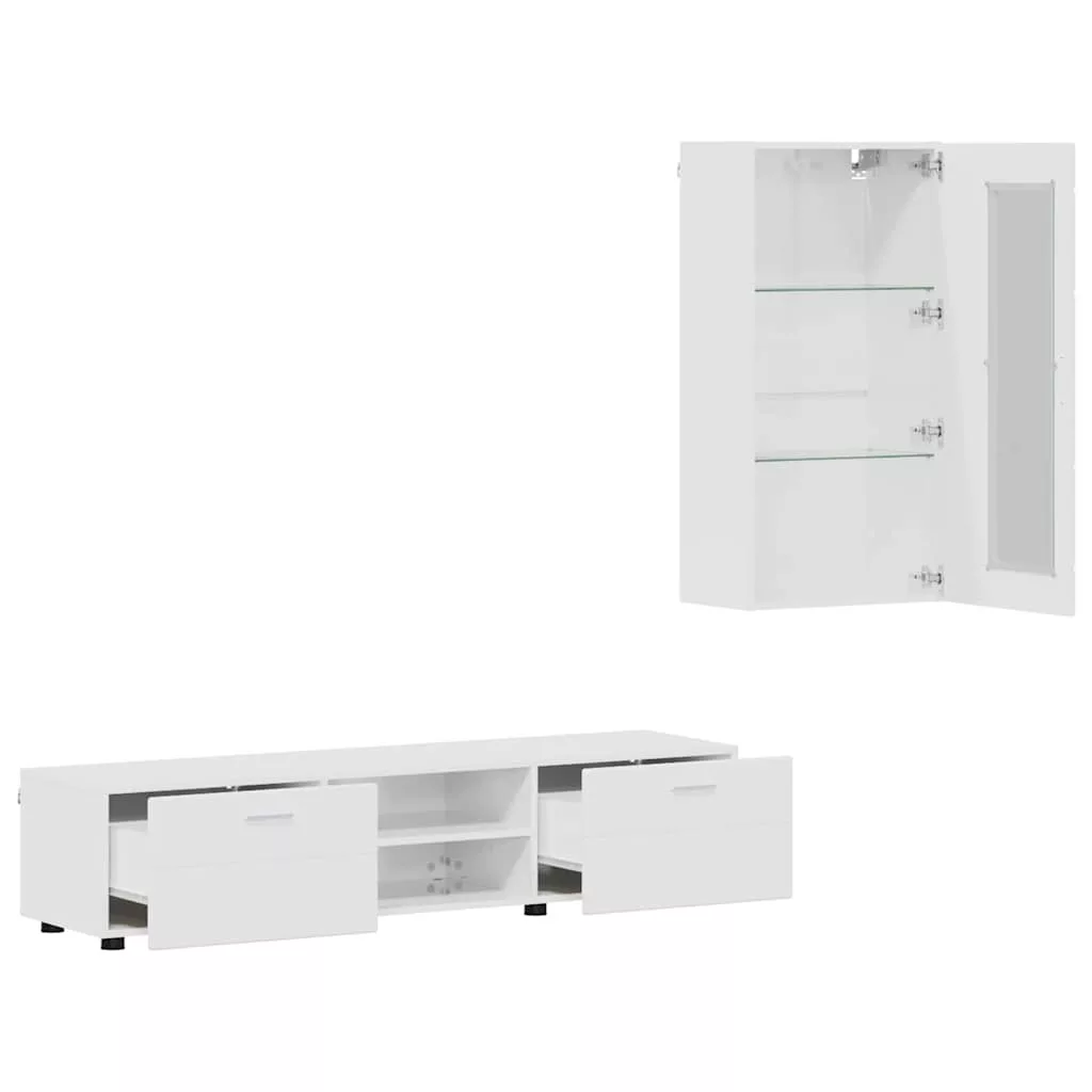 TV szekrény garnitúra fiókkal ajtóval Magas Fényű Fehér Faanyag
