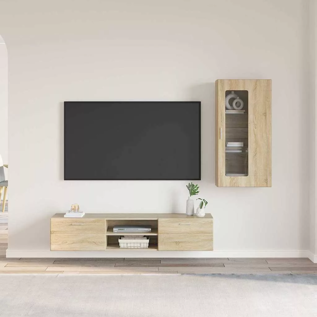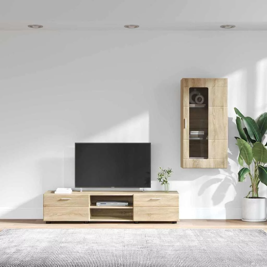TV szekrény garnitúra fiókkal polcokkal Sonoma tölgy Faanyag
