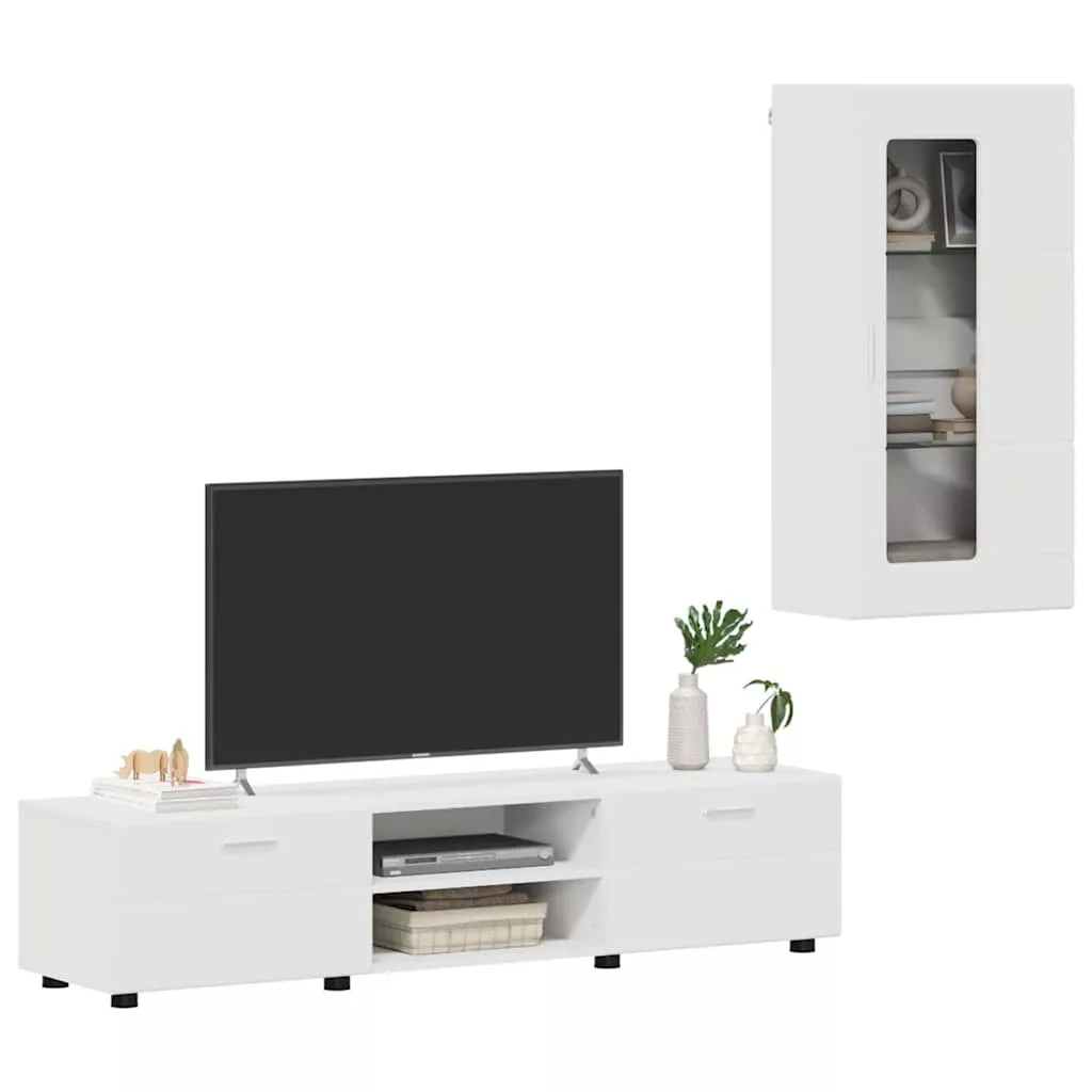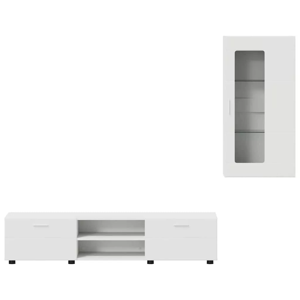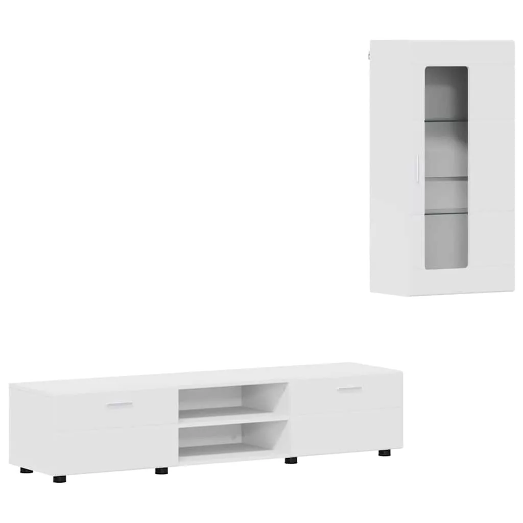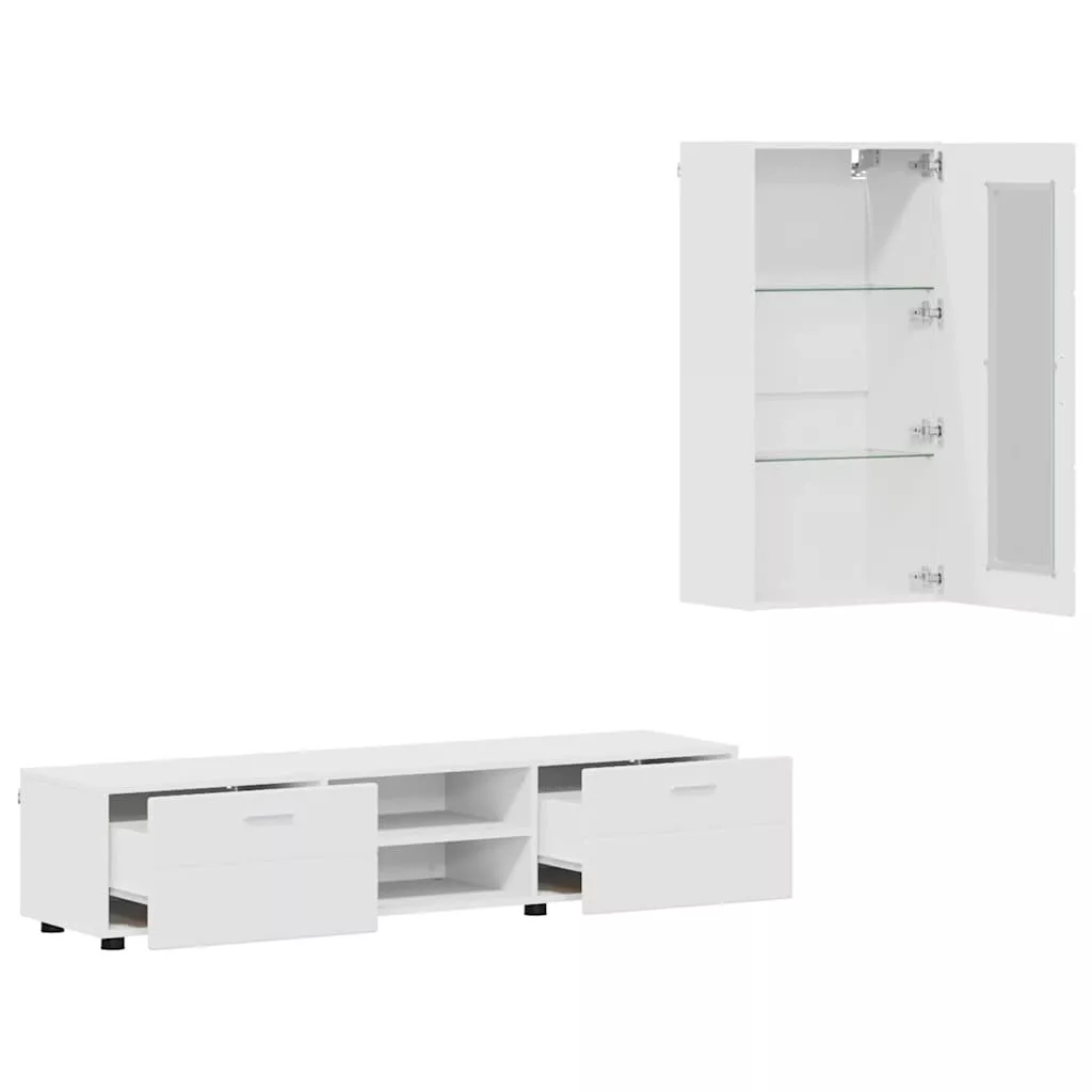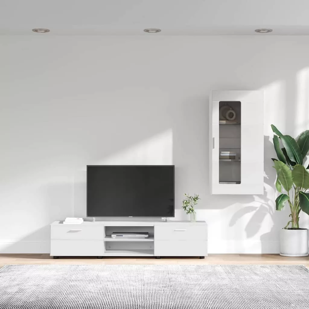 TV szekrény garnitúra fiókkal polcokkal tárolóval Fehér Faanyag