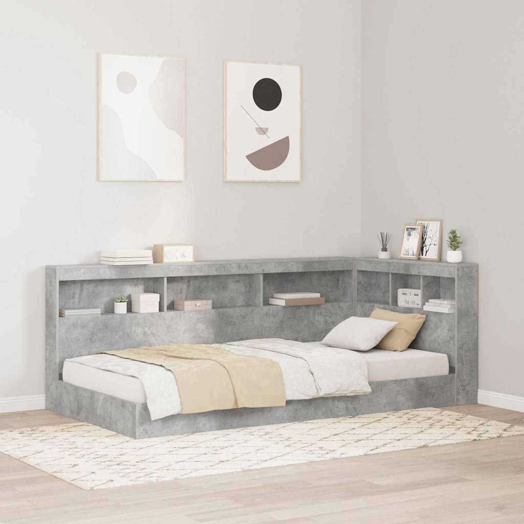 Tároló fejtámla polcokkal tárolóval Beton szürke 80 cm Faanyag
