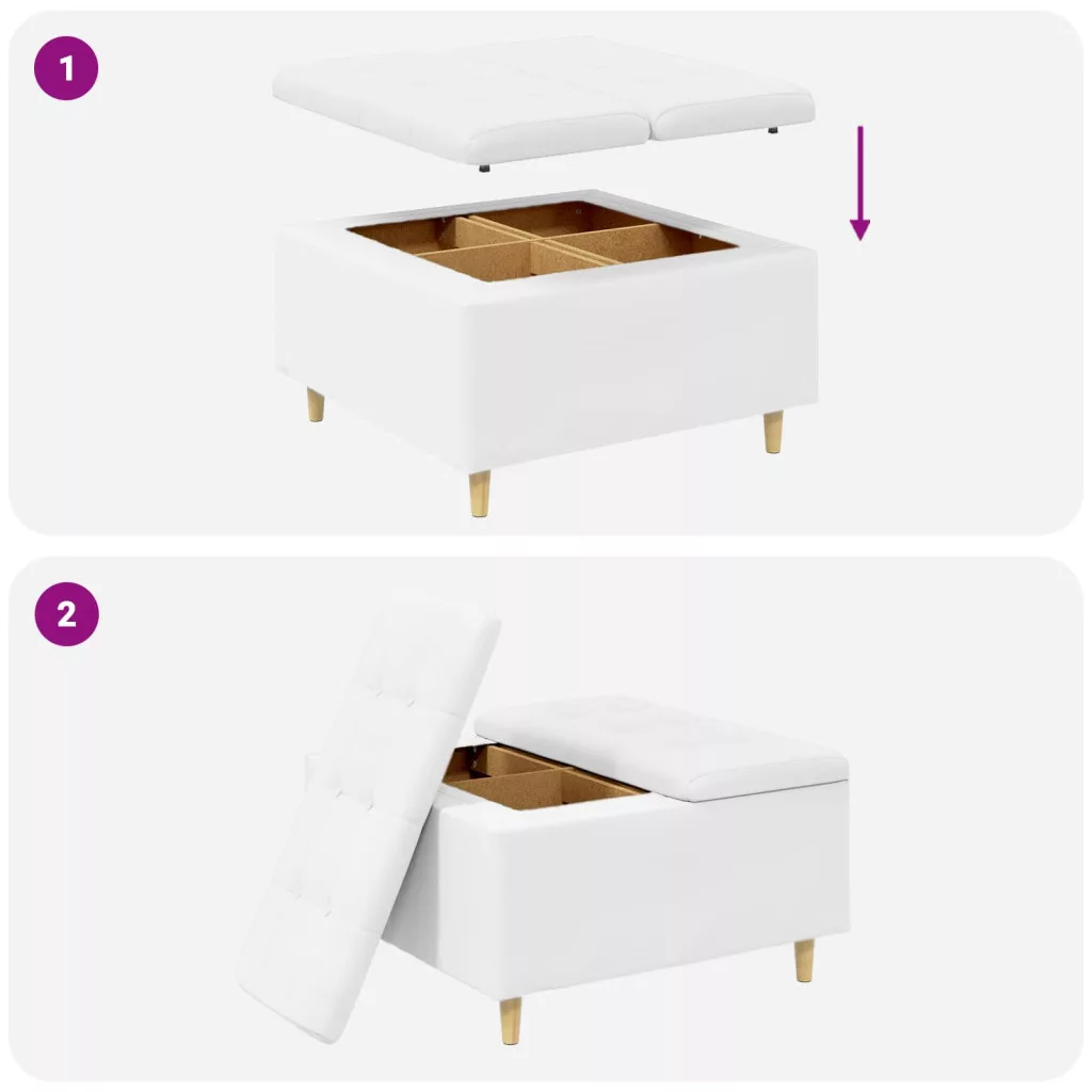 Ez a modern tároló ottoman sokoldalú bútordarab, amivel könnyedén ötvözheted a stílust és a funkcionalitást bármely szobában. A letisztult vonalak és minimalista dizájn alapvető szempontjai a mai otthonoknak, tökéletes nappalik, hálószobák vagy előszobák számára. A párnázott, gombos fedél nemcsak szép, hanem kényelmes is, a rejtett tárolórekesz pedig szuper praktikus megoldást kínál a tér rendszerezésére. Az ottoman arra hív, hogy pihenj, ülj rajta vagy tárolj benne, remek választás azoknak, akik értékelik a dizájn és a hasznosság kombinációját. Elegáns gombos terv: Az ottoman párnázott, gombos teteje plusz eleganciát és érdeklődést visz bármely szobába. Ez a részlet emeli a modern stílusát és a kényelmet hosszan megőrzi a teljjesség érdekében. Robusztus láb támogatás: Az oszloplábaik mérnöki fából készülnek, szilárd tartásra és stabilitásra tervezve. A barna felület melegséget ad, így bármely színsémához jól illik. Ezek a lábak stabilan tartják az ottomant bármilyen padlón. Kényelmes rejtett tárolás: A szép külső alatt egy praktikus tárolóhely rejtőzik. A rejtett rekesz ideális takarók, magazinok vagy más alapvetők elrejtésére, megörizve a tér rendjét。 Beltéri sokoldalúság: Belső használatra tervezett, ez az ottoman több célt is szolgál. Lehet extra ülőhely, lábtartó vagy tároló megoldás, így alkalmazkodik a háztartás igényeihez. Stílusos megjelenése minden szobát feldob, így multifunkciós bútordarab, ami kiválóan illik különböző környezetekbe. Ápolás és karbantartás: A tökéletes állapot megőrzéséhez csak gyakran porszívózd a kárpitozott tetejét. Ez az egyszerű ápolás biztosítja, hogy a szövet tiszta maradjon, így a bútor vonzereje hosszú távon is megmarad.