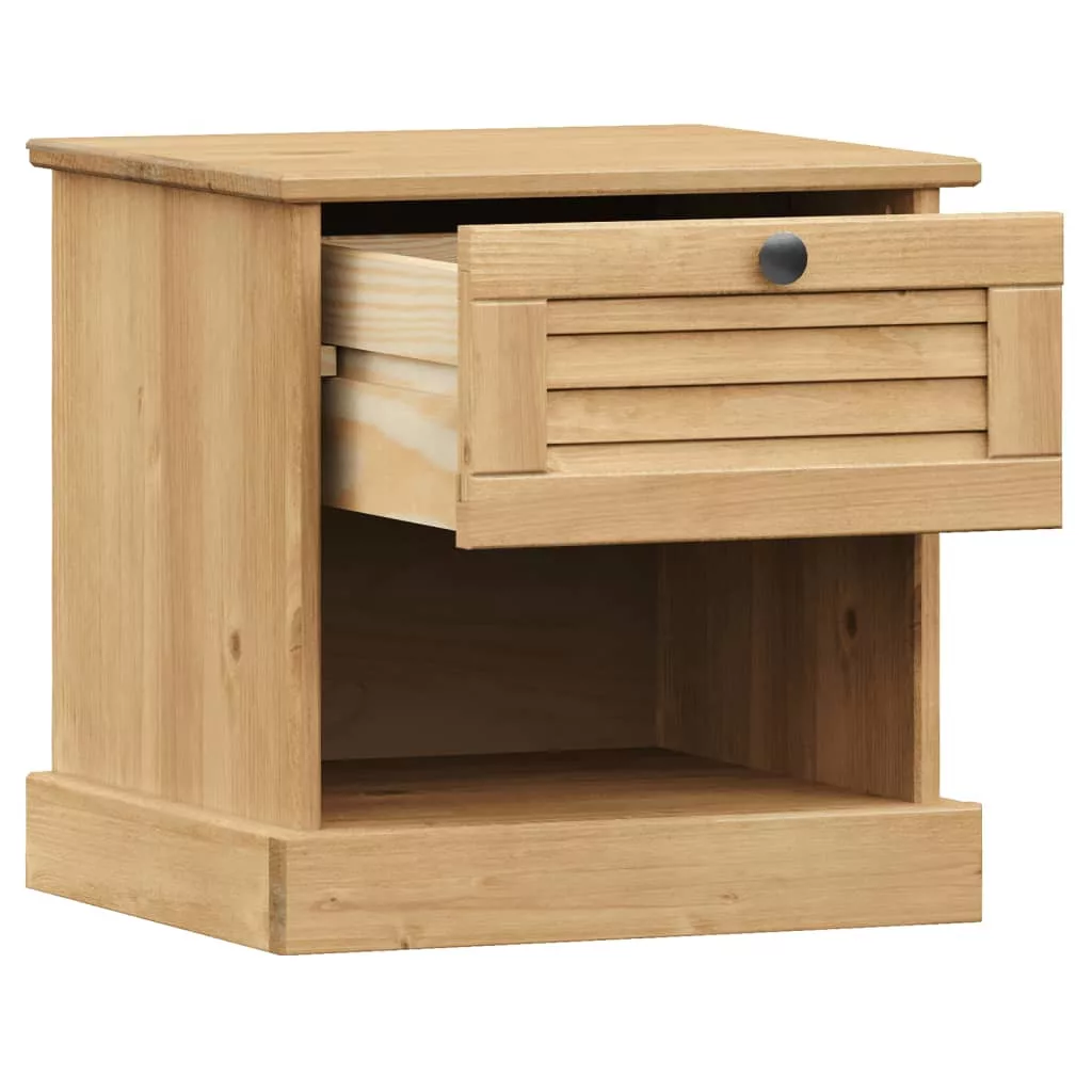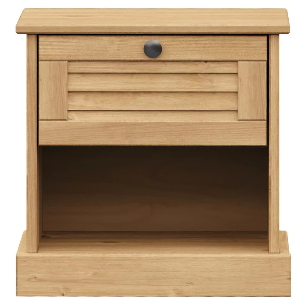 Ez a fából készült, stílusos dizájnnal ellátott éjjeliszekrény könnyen illeszkedik hálószobájába vagy nappalijába, és időtlen bájt kölcsönöz a belső térnek. Tömör fenyőfa: A tömör fenyőfa egy gyönyörű természetes anyag. A fenyőfa egyenes erezetű, a csomók pedig jellegzetes, rusztikus megjelenést biztosítanak az anyagnak. A tömör fenyőfából készült éjjeliszekrény strapabíró és masszív.Bőséges tárolóhely: Az éjjeliszekrény kényelmes fiókkal és rekesszel rendelkezik, így elérhető közelségben tarthatja a legfontosabb dolgokat.Könnyen karbantartható: Az éjjeliszekrény könnyen tisztítható nedves ruhával, és kevesebb karbantartást igényel.Fémgomb: Az ágy mellé tehető kis szekrény fémgombbal van ellátva, amely megkönnyíti a szekrény nyitását és zárását, miközben extra szépséget ad hozzá.
