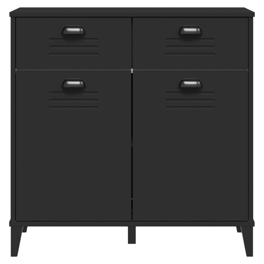 Ez a klasszikus, ipari stílusú tálalószekrény kielégíti igényeit, és a helyiség nagyszerű kiegészítője lesz. Tartós anyag: A szerelt fa kivételes minőségű, sima felületű, szilárd, stabil, és ellenáll a nedvességnek.Bőséges tárolóhely: A büfészekrény elegendő helyet biztosít alapvető holmijai kézközelben történő rendezett tárolásához.Bemutatófunkció: A büfészekrény masszív teteje ideális cserepes növények, képkeretek, és egyéb dekorációs tárgyak elhelyezésére.Praktikus fogantyú: A kisszekrény fogantyúi megkönnyítik a szekrény kinyitását és zárását, miközben extra szépséget kölcsönöznek neki. Figyelem:A felborulás elkerülése érdekében ezt a terméket a mellékelt fali rögzítőeszközzel kell használni.