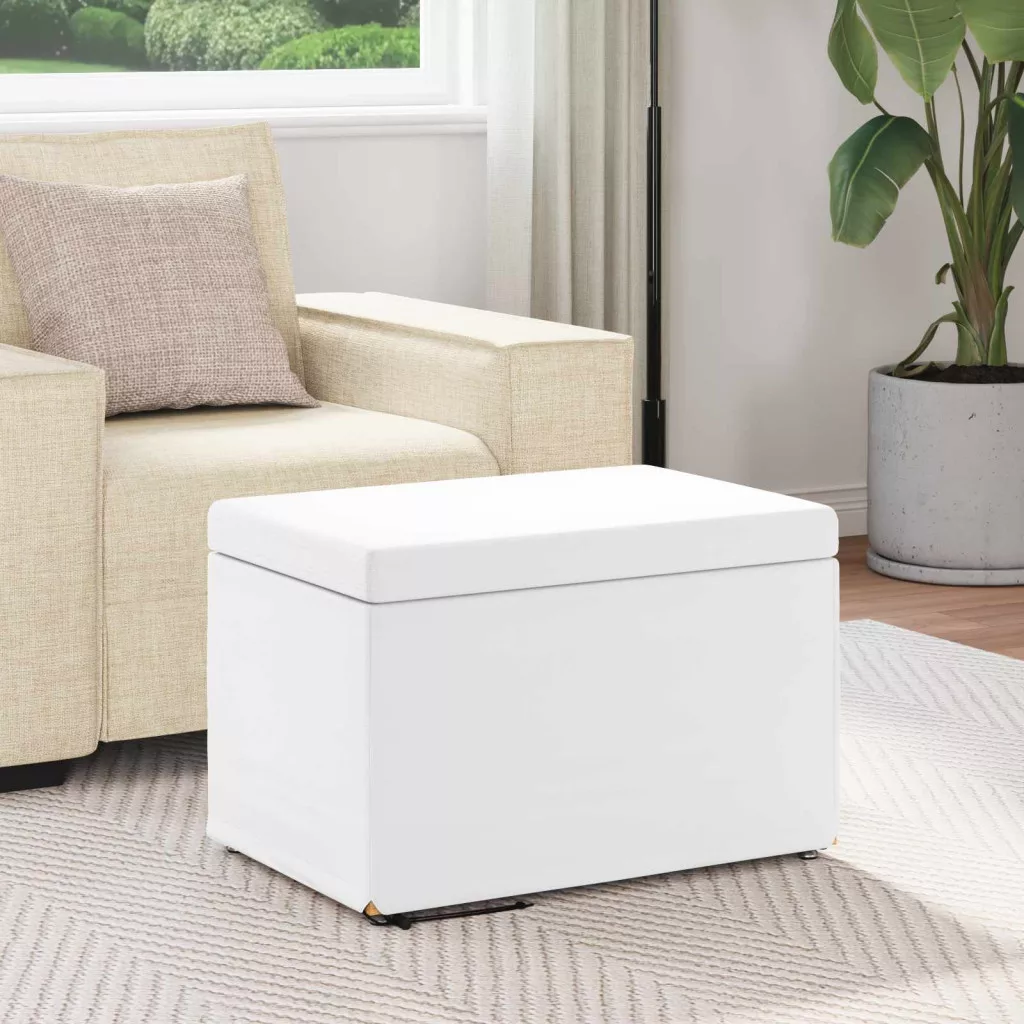 vidaXL Zsámoly Fehér 61 x 41 x 40 cm Műbőr és Műanyag Fa