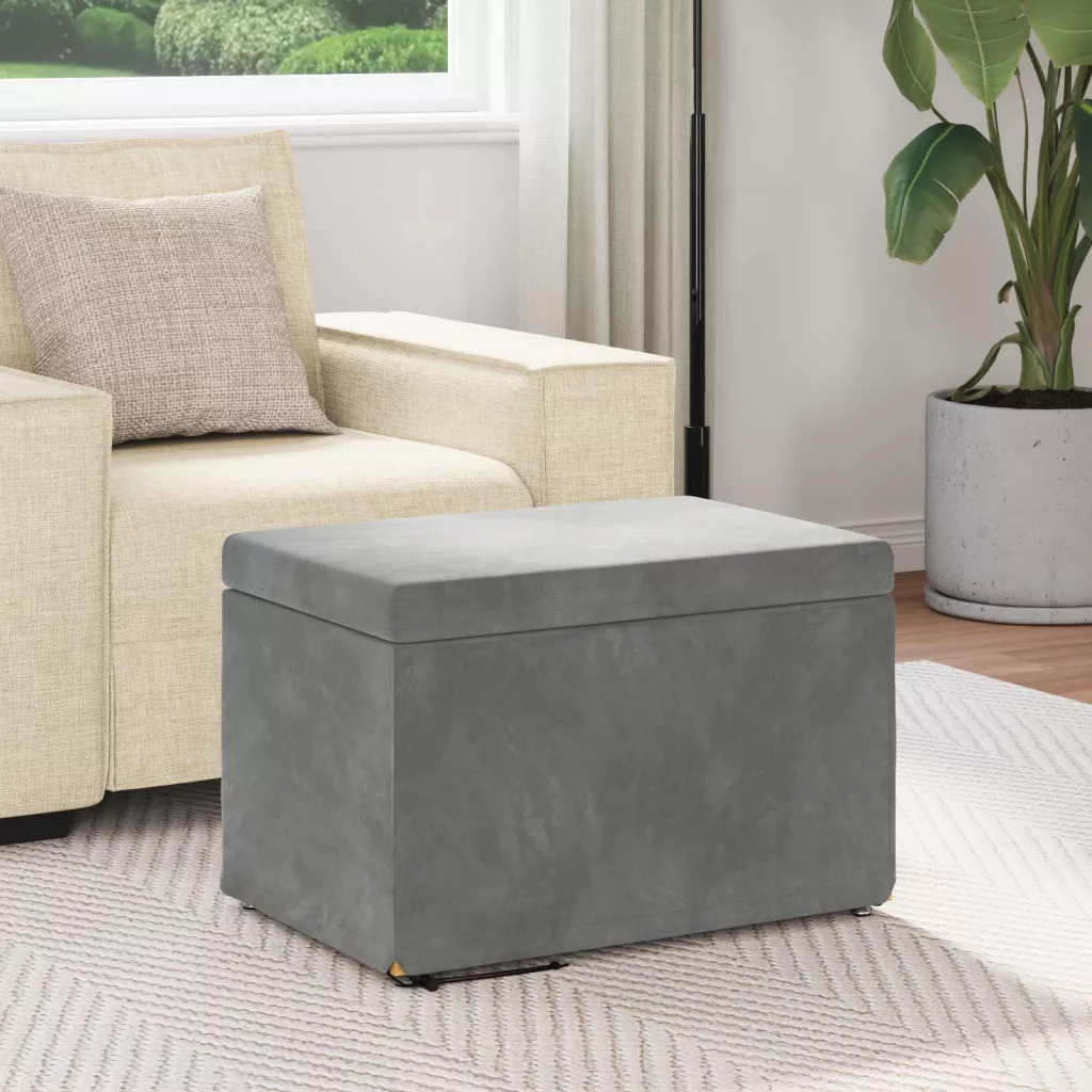 vidaXL Zsámoly Sötétszürke 61 x 41 x 40 cm Bársony és Műanyag Fa