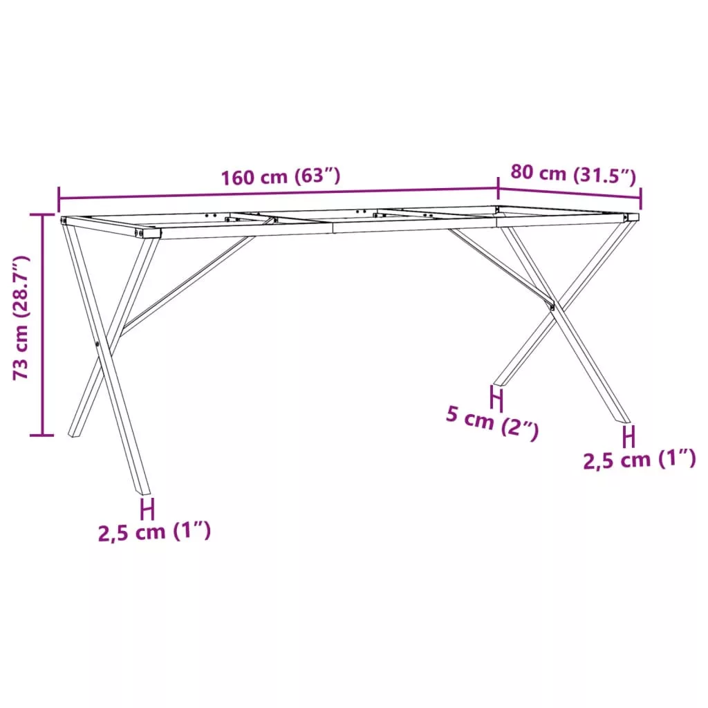 acél étkezőasztallábak X-alakú vázzal 160 x 80 x 73 cm