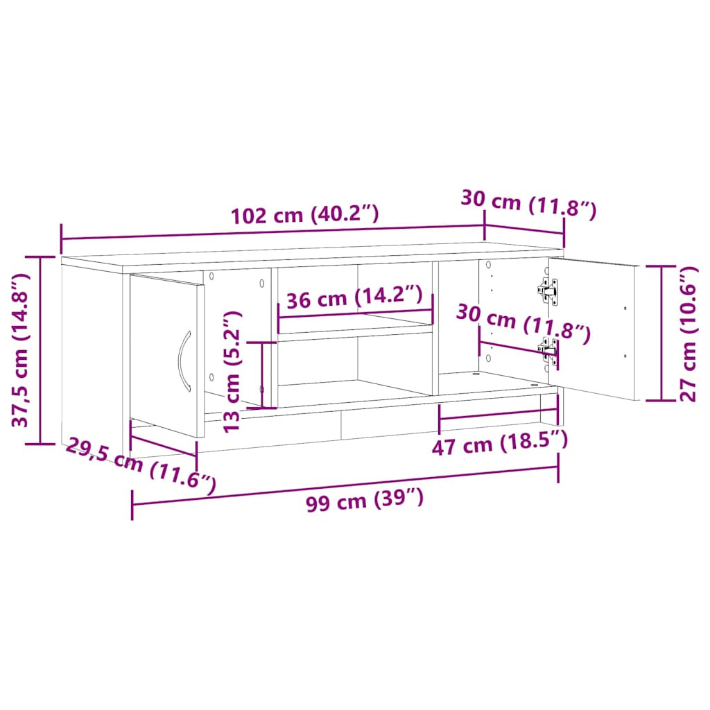 antik fa színű szerelt fa TV-szekrény 102 x 30 x 37,5 cm