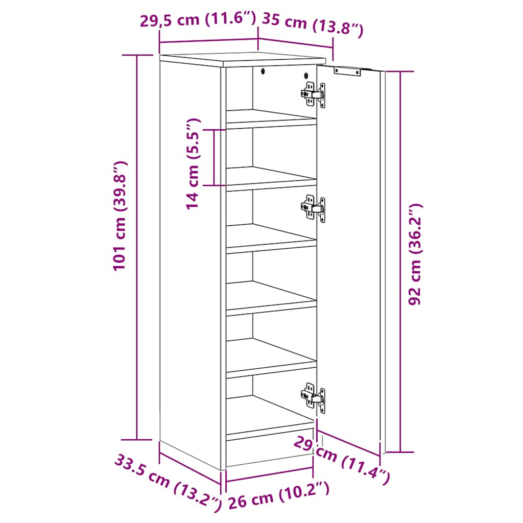 antik fa színű szerelt fa cipőszekrény 29,5 x 35 x 100,5 cm