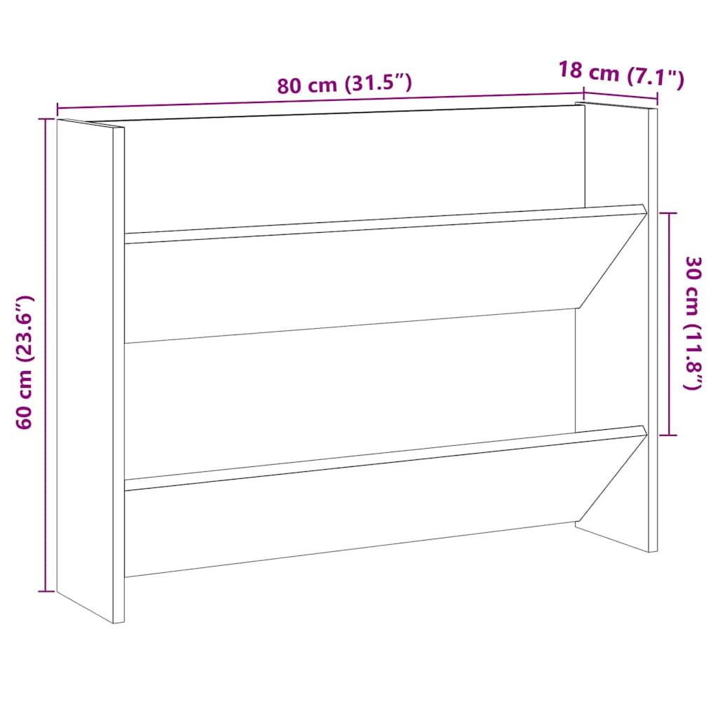 Ezzel a modern és kompakt fali cipőszekrénnyel soha többé nem fog bosszankodni a házban szanaszét heverő cipők miatt. Stabil és tartós anyag: A szerelt fa tartós és stabil anyag sima felülettel, amely ellenáll a nedvességnek, a vetemedésnek és a hasadásnak, így megbízható választás különféle célokhoz.Bőséges tárolóhely: A cipőtartó 2 döntött polccal rendelkezik, amelyek bőséges helyet biztosítanak cipői, csizmái és papucsai rendezett tárolásához. Helytakarékos: Ez a cipőrendszerező falra szerelhető, így extra tárolóhelyet biztosít. Ezáltal maximalizálhatja a padlóterületet, és tisztán tarthatja a környezetét.Könnyen gondozható: Sima felületének köszönhetően a függő cipőszekrény nedves ruhával könnyen tisztítható, és kevesebb gondozást igényel.