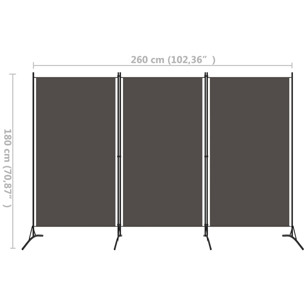 antracitszürke 3 paneles paraván 260 x 180 cm
