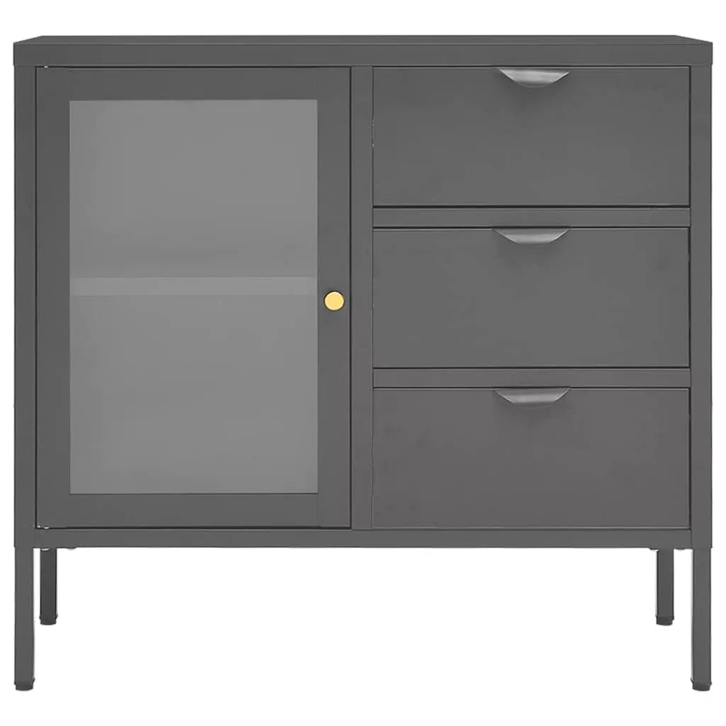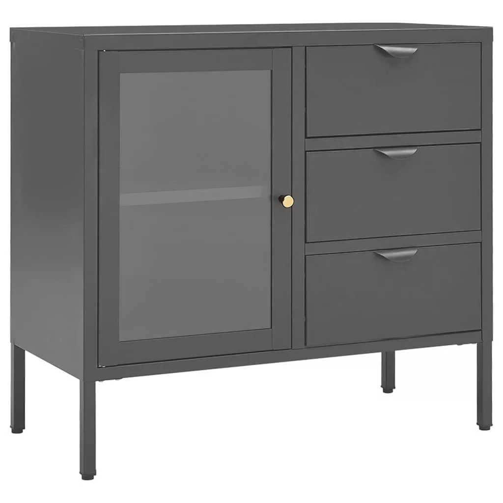 antracitszürke acél és edzett üveg tálalószekrény 75x35x70 cm