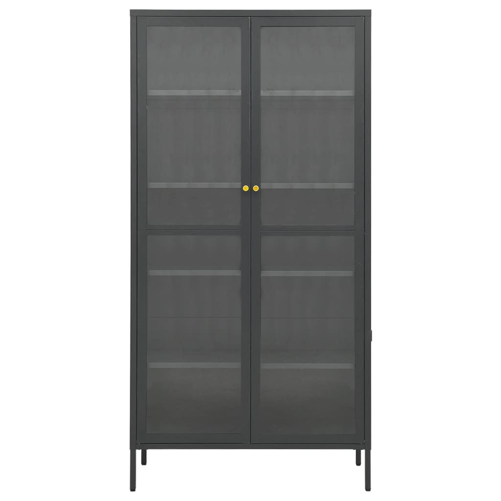 antracitszürke acél és edzett üveg vitrin 90 x 40 x 180 cm