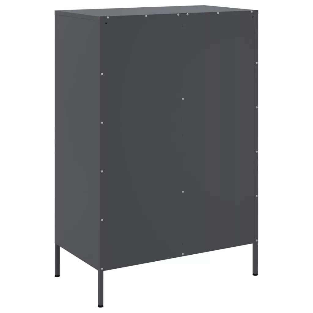 Ez a masszív, ipari stílusú magasszekrény időtlen és modern kiegészítője lesz nappalijának vagy hálószobájának. Stabil anyag: A tálalószekrény váza hidegen hengerelt acélból készült. A hidegen hengerelt acél egyfajta alacsony szén-dioxid-kibocsátású acél, amelyet hideghengerlési eljárással állítanak elő, és közel normál szobahőmérsékleten dolgoznak fel. A hidegen hengerelt acél simább felülettel, magasabb fokú szilárdsággal és nagyobb pontossággal rendelkezik.Bőséges tárolóhely: Ez a szekrény bőséges helyet biztosít folyóiratai, könyvei, DVD-i, távirányítói, és egyéb apró holmija kézközelben történő rendezett tárolásához.Állítható csavarlábak: Ez a szekrény négy állítható csavarlábbal lett felszerelve, hogy kiegyenlítse az egyenetlen padlót, így biztosítva a stabilitást és az egyensúlyt.Könnyen tisztítható: A fém szekrény nedves ruhával könnyen tisztítható, és kevesebb gondozást igényel. Figyelem:A felborulás elkerülése érdekében ezt a terméket a mellékelt fali rögzítőeszközzel kell használni.