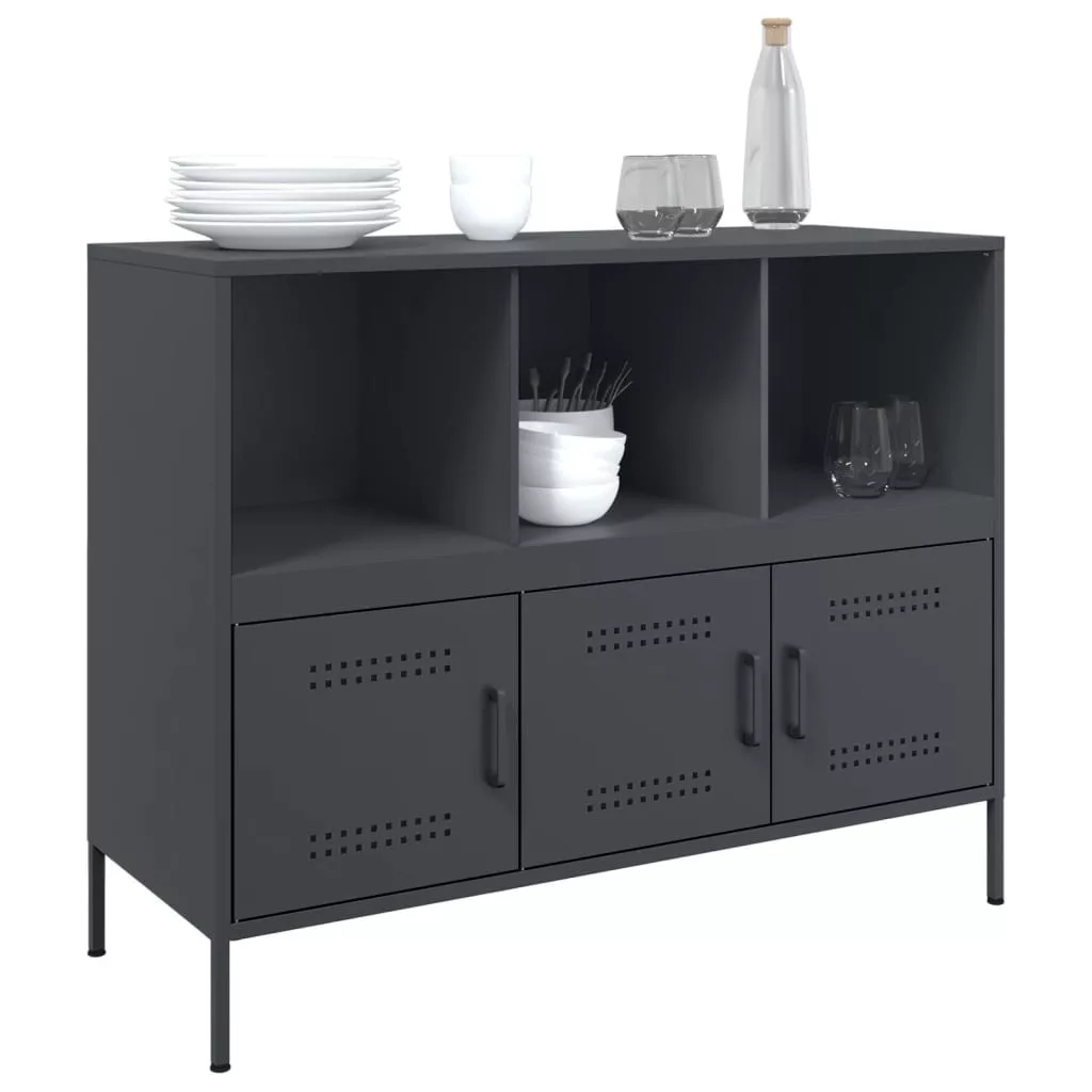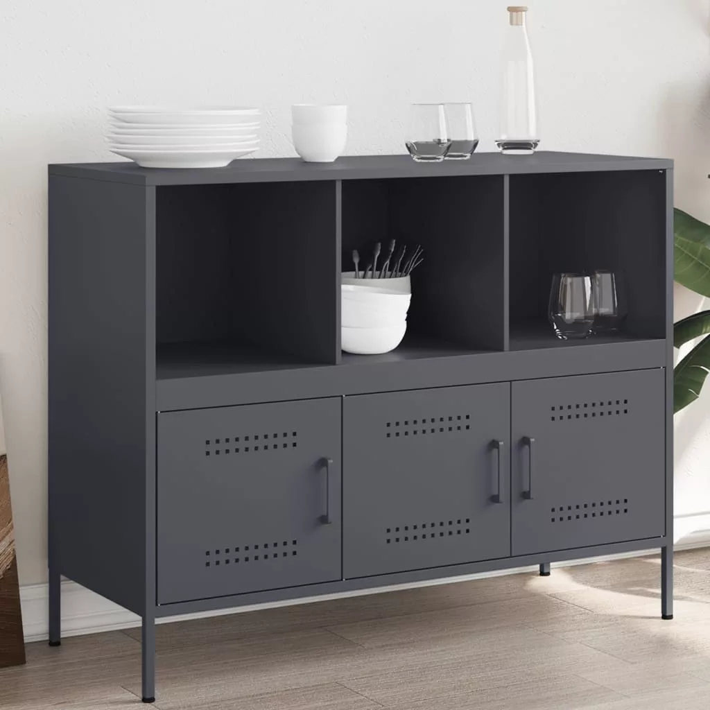 Ez a masszív, ipari stílusú tálalószekrény nappalija vagy hálószobája időtlen és modern kiegészítője lesz. Stabil anyag: A tálalószekrény váza hidegen hengerelt acélból készült. A hidegen hengerelt acél egy alacsony széntartalmú acél, amelyet hideghengerelési eljárással állítanak elő, és közel normál szobahőmérsékleten dolgoznak fel. A hidegen hengerelt acél simább felületű, valamint nagyobb szilárdságú és pontosságú.Bőséges tárolóhely: Ez a büfészekrény bőséges helyet biztosít folyóiratai, könyvei, DVD-i, távirányítói, és egyéb apró holmija kézközelben történő rendezett tárolásához.Állítható csavarlábak: Ez a tárolószekrény négy állítható csavarlábbal lett felszerelve, hogy kiegyenlítse az egyenetlen padlót, így biztosítva a stabilitást és az egyensúlyt.Praktikus ajtó: Az ajtó segít tisztán és rendezetten tartani a teret azáltal, hogy elrejtheti mögöttük az apróbb dolgokat.Könnyen tisztítható: A fém szekrény nedves ruhával könnyen tisztítható, és kevesebb gondozást igényel. Figyelem:A felborulás elkerülése érdekében ezt a terméket a mellékelt fali rögzítőeszközzel kell használni.