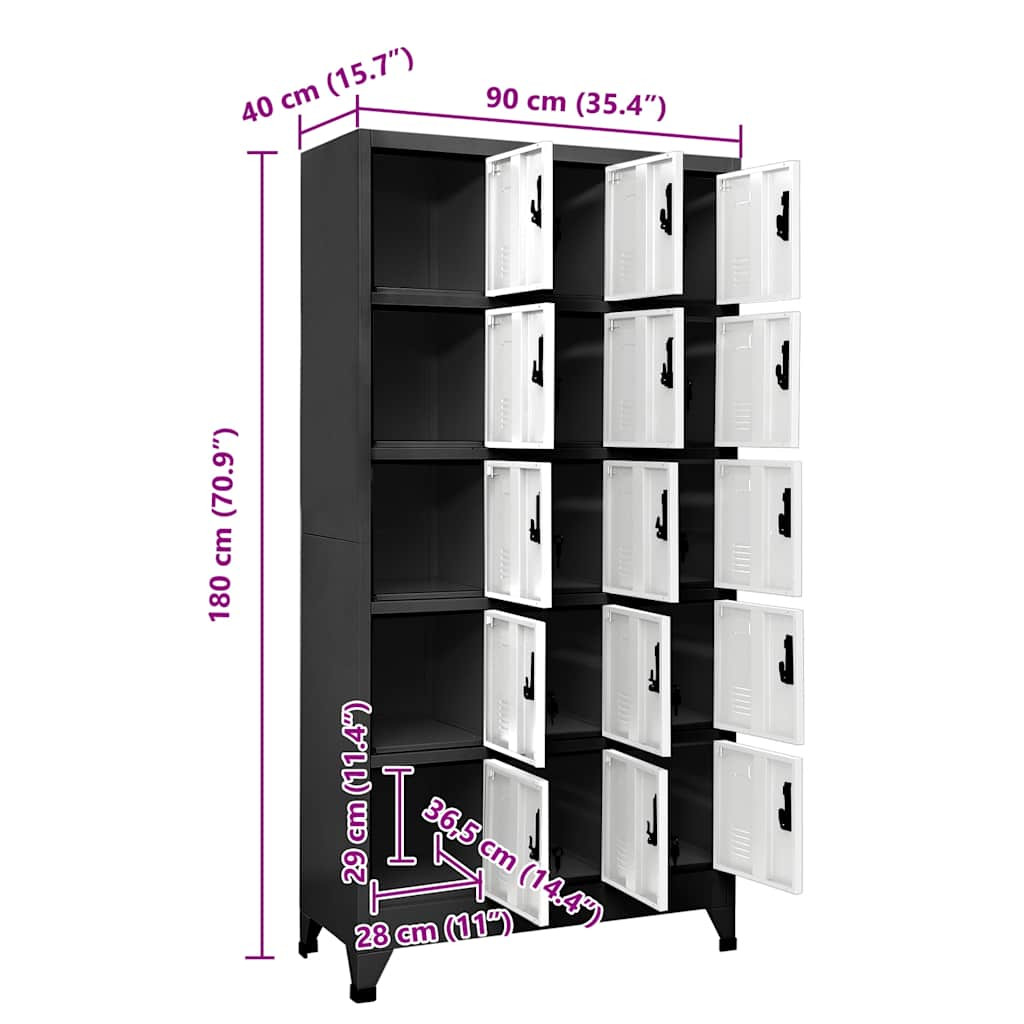 antracitszürke és fehér acél zárható szekrény 90 x 40 x 180 cm