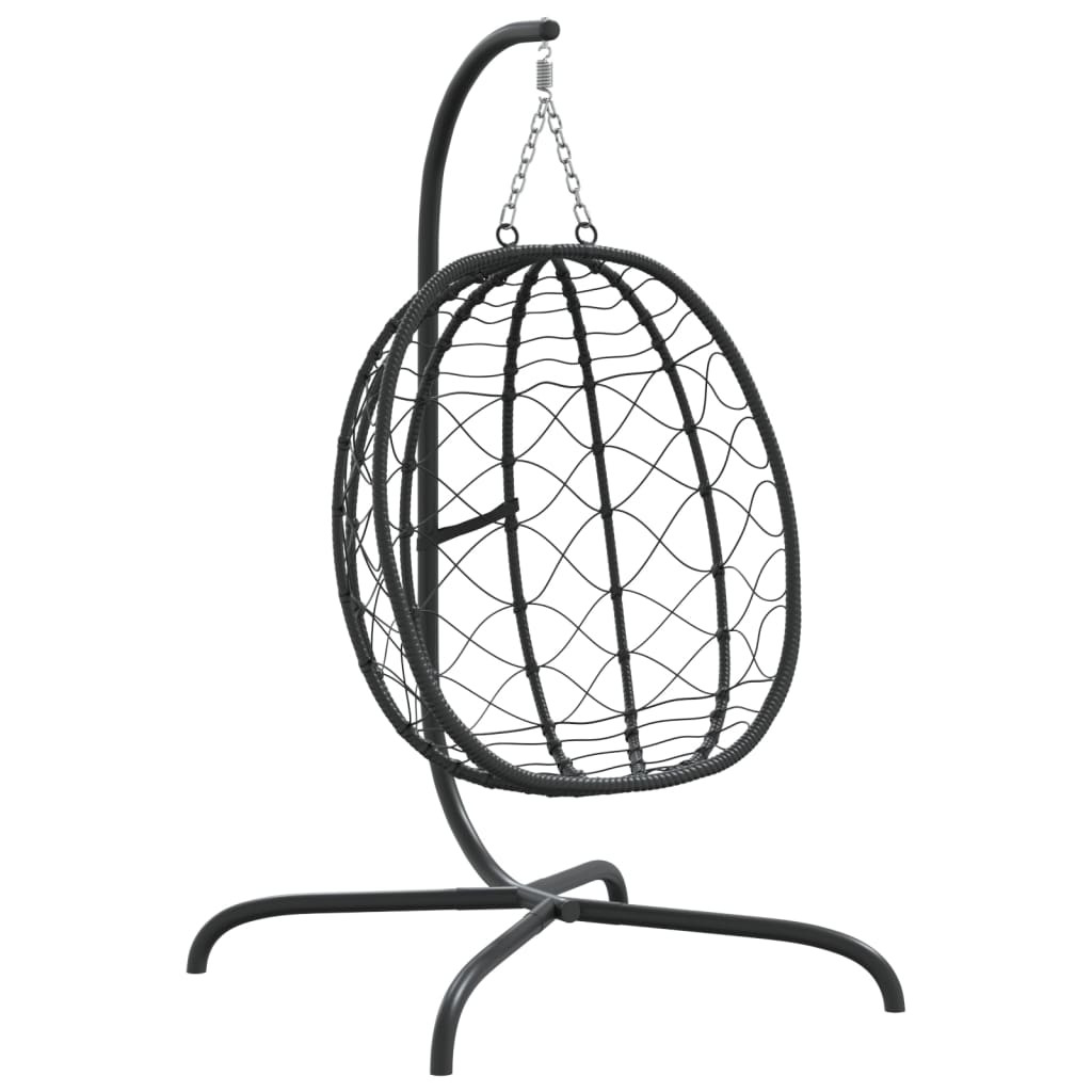 antracitszürke polyrattan és acél függő kagylószék párnával