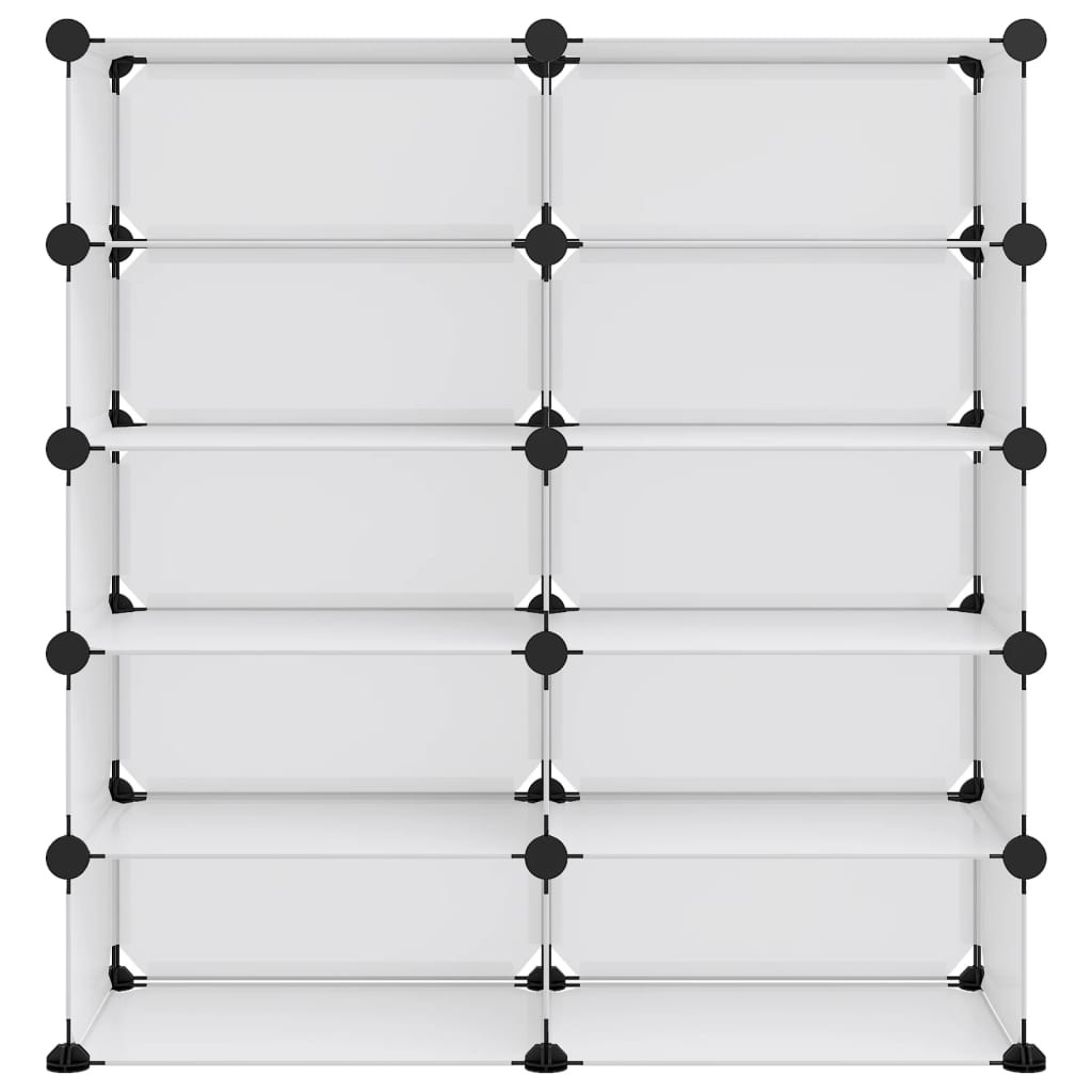 Ez a cipőtartó nagyszerű tárolási megoldást kínál kedvenc lábbelijei és egyéb kiegészítői számára. Praktikus anyag: A cipőszervező polipropilén műanyag panelekből készült, amelyek vízállóak, és kevés karbantartást igényelnek.Erős és stabil szerkezet: Az acél vázak erős szerkezetet és stabilitást biztosítanak.Felhasználóbarát kialakítás: A cipősszekrény kényelmesen összeszerelhető a mellékelt fakalapáccsal. Használaton kívül a helytakarékosság érdekében a panelek könnyen szétválaszthatók, és egymásra rakhatók.Kiváló tároló: A cipőtároló egység bőséges tárolóhelye megkönnyíti holmija elrendezését.Széleskörű felhasználás: A nagy tárolóhelynek és az egyszerű kialakításnak köszönhetően a tárolóállvány kiváló tárolómegoldás otthon, a kollégiumban és az irodában. Megjegyzés:Egy-egy kocka maximális terhelhetősége 10 kg.