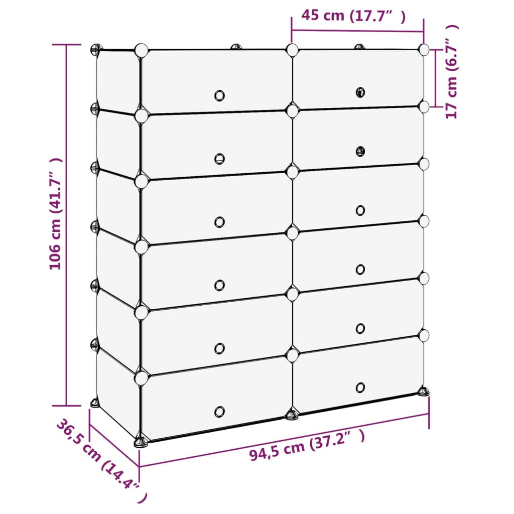 Ez a cipőtartó nagyszerű tárolási megoldást kínál kedvenc lábbelijei és egyéb kiegészítői számára. Praktikus anyag: A cipőszervező polipropilén műanyag panelekből készült, amelyek vízállóak, és kevés karbantartást igényelnek.Erős és stabil szerkezet: Az acél vázak erős szerkezetet és stabilitást biztosítanak.Felhasználóbarát kialakítás: A cipősszekrény kényelmesen összeszerelhető a mellékelt fakalapáccsal. Használaton kívül a helytakarékosság érdekében a panelek könnyen szétválaszthatók, és egymásra rakhatók.Kiváló tároló: A cipőtároló egység bőséges tárolóhelye megkönnyíti holmija elrendezését.Széleskörű felhasználás: A nagy tárolóhelynek és az egyszerű kialakításnak köszönhetően a tárolóállvány kiváló tárolómegoldás otthon, a kollégiumban és az irodában. Megjegyzés:Egy-egy kocka maximális terhelhetősége 10 kg.
