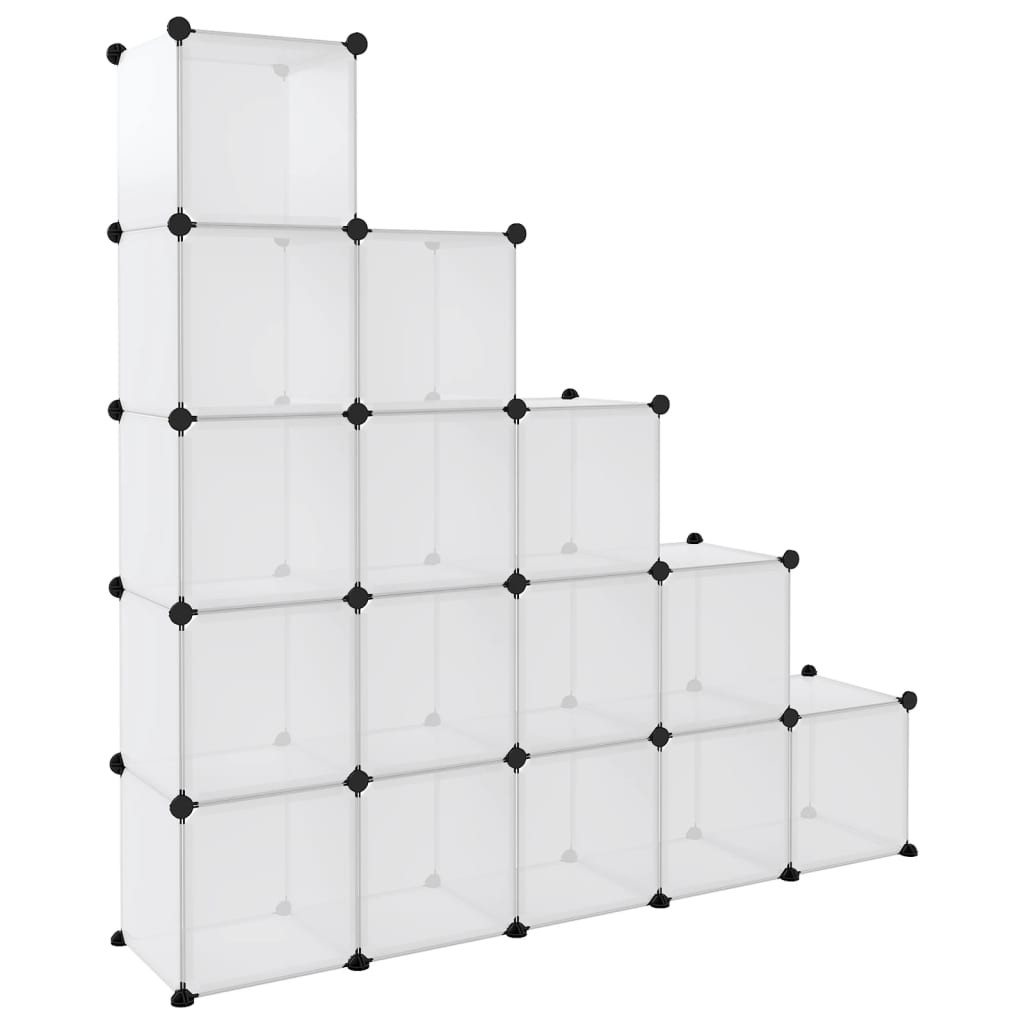 Ezzel a sokoldalú tárolókockával a lehető legjobban használhatja ki a korlátozott helyet, és elégítheti ki különféle tárolási igényeit. Praktikus anyag: A tároló polipropilén műanyag panelekből készült, amelyek vízállóak, és kevés karbantartást igényelnek.Erős és stabil szerkezet: Az acél vázak erős szerkezetet és stabilitást biztosítanak.Felhasználóbarát kialakítás: A könnyű súlyú kialakításnak köszönhetően a tárolópolc a mellékelt fakalapáccsal igénye szerint állítható össze. Használaton kívül a helytakarékosság érdekében a panelek könnyen szétválaszthatók, és egymásra rakhatók.Bőséges tárolóhely: Ez az elemes műanyagszekrény 15 kockát tartalmaz. A tárolóhely megkönnyíti holmija rendezett tárolását.Széleskörű felhasználás: A nagy tárolóhelynek és az egyszerű kialakításnak köszönhetően a tárolóállvány kiváló tárolómegoldás otthon, a kollégiumban és az irodában. Megjegyzés:Egy-egy kocka maximális terhelhetősége 10 kg.