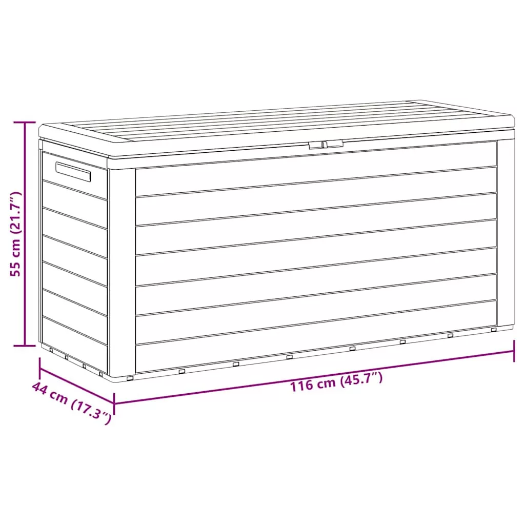 Ez a stílusos tárolóláda ideális párnák, takarók, és egyebek tárolására a kertben vagy a teraszon. Robusztus és hosszú élettartamú: A polipropilén sokoldalú és robusztus anyag, amelyet stabil, hőálló és könnyen tisztítható. Széles körben használják, például szőnyegek és háztartási cikkek gyártásakor.Bőséges tárolóhely: Ez a tárolóláda bőséges helyet biztosít a párnák, takarók, és egyéb tárgyak tárolására.Többszörös felhasználás: A kerti tárolóláda szilárd felépítésének köszönhetően tárolóként és szerszámos ládaként is használható.Időtlen dizájn: A kerti tárolóláda diszkrét, mégis időtlen megjelenéssel bír, és bármilyen dekorációba tökéletesen illeszkedik. Jó tudni:A kültéri bútor szépségének megőrzése érdekében javasoljuk, hogy vízálló huzattal fedje be.
