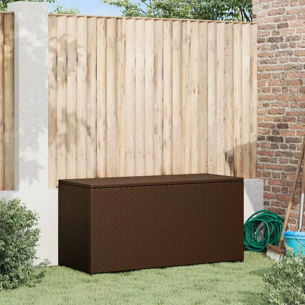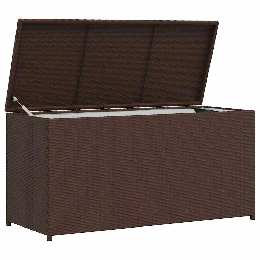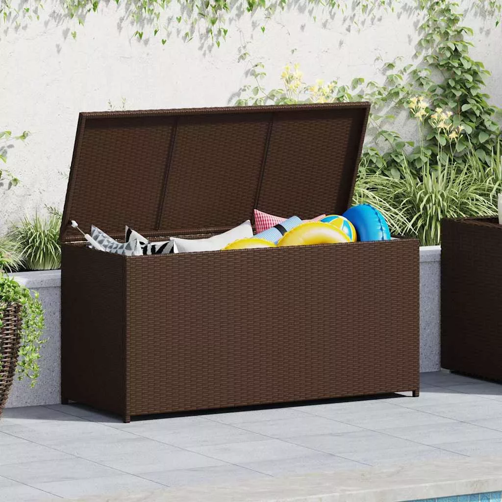 Ez a PE rattan kerti tárolóláda ideális tárolóhelyet biztosít takarók, párnák, könyvek, és egyéb, a kertben vagy teraszon heverő tárgyak számára. A tárolóláda béléssel rendelkezik, így ideális tárolóhelyet biztosít a kerti bútor párnáinak vagy bármilyen egyéb tárgynak. Az időjárás viszontagságainak ellenálló PE rattannak hála a tárolódoboz könnyen tisztítható, kopásálló és mindennapos kültéri használatra is alkalmas. A láda erős, porszórt acélvázzal rendelkezik, ezért nagyon tartós. A poliészter bélés megvédi a láda tartalmát a nedvességtől. Figyelem: Kérjük, takarja le a ládát egy vízálló ponyvával/vászonnal, hogy esős időben ne kerüljön bele víz.