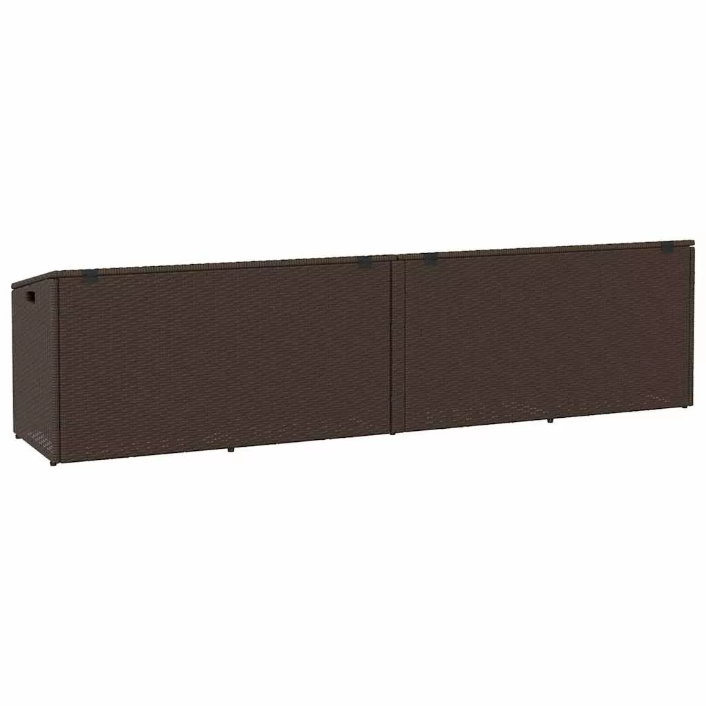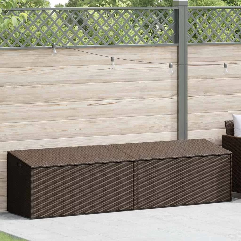 Ez a kerti tárolódoboz tökéletesen alkalmas a kültéri bútorpárnák, kerti kellékek, medencetörölközők és egyéb tárgyak rendezett és könnyen hozzáférhető tárolására. Tartós anyag: A PE rattan, más néven polyrattan, egy erős, kevés karbantartást igénylő szintetikus anyag, amely úgy néz ki, mint a természetes rattan. Könnyű, könnyen tisztítható, tartóssága és időjárásálló tulajdonságai miatt gyakran használják kültéri bútorok készítéséhez.Robusztus és stabil váz: A porszórt acélváz erős, stabil, tartós, ellenáll a korróziónak és a zord időjárásnak, így biztosítja a tartós használatot.Biztonságos és könnyen nyitható és zárható: A gázrugó megkönnyíti a fedél kinyitását, és megakadályozza, hogy becsapódjon vagy becsípje az ujjakat.Tárolási funkció: A kerti bútor alatt tárolóhely található, vízálló zsákkal felszerelve a párnák, játékok és egyéb tárgyak tárolására. Jó tudni:A kültéri bútor szépségének megőrzése érdekében javasoljuk, hogy vízálló huzattal fedje be.