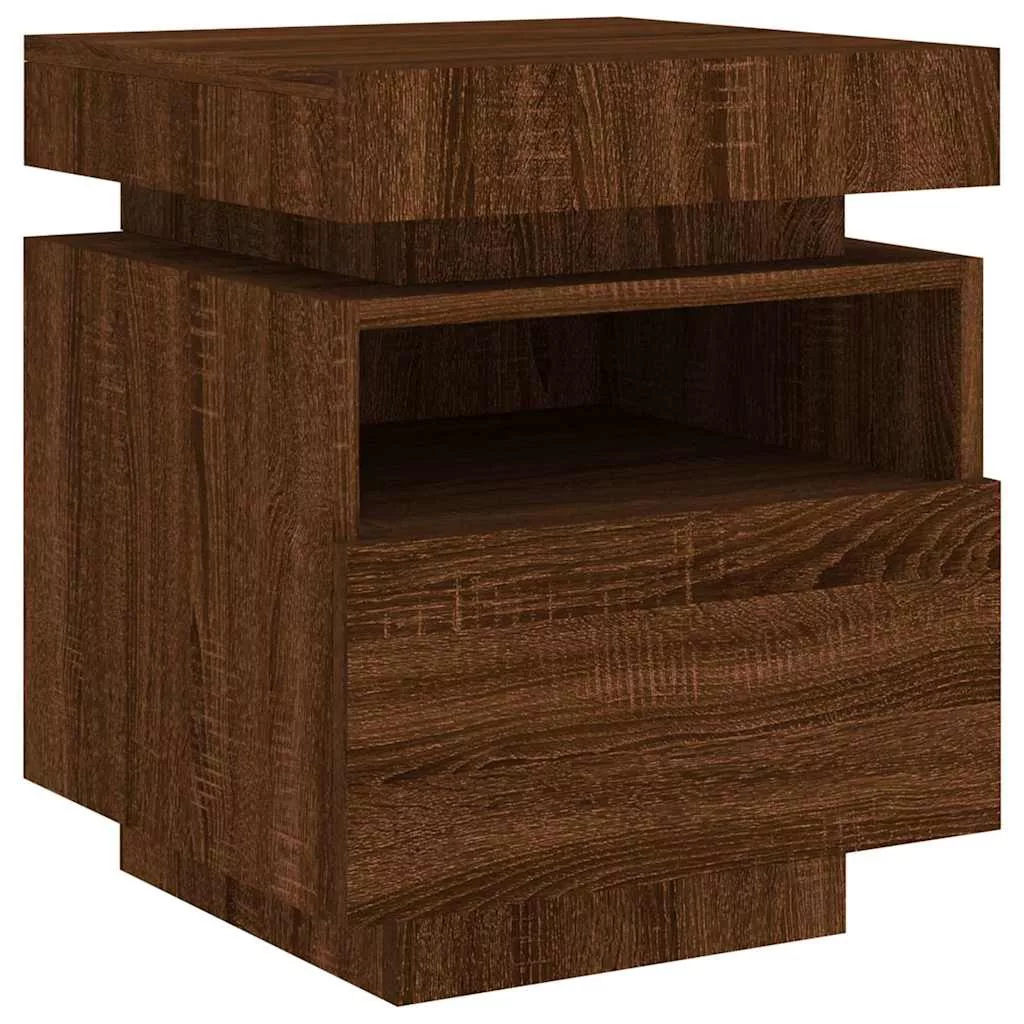 barna tölgy színű éjjeliszekrény LED-világítással 40x39x48,5 cm