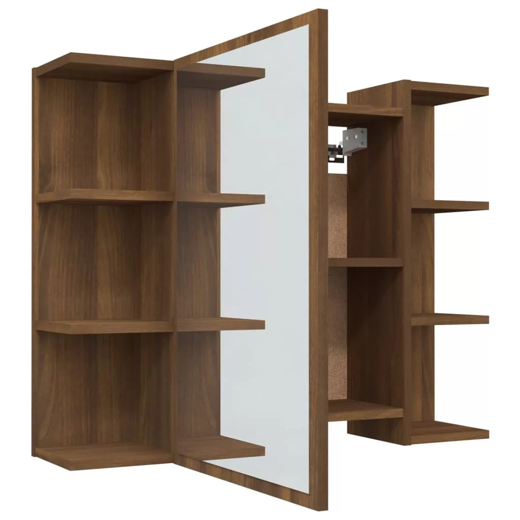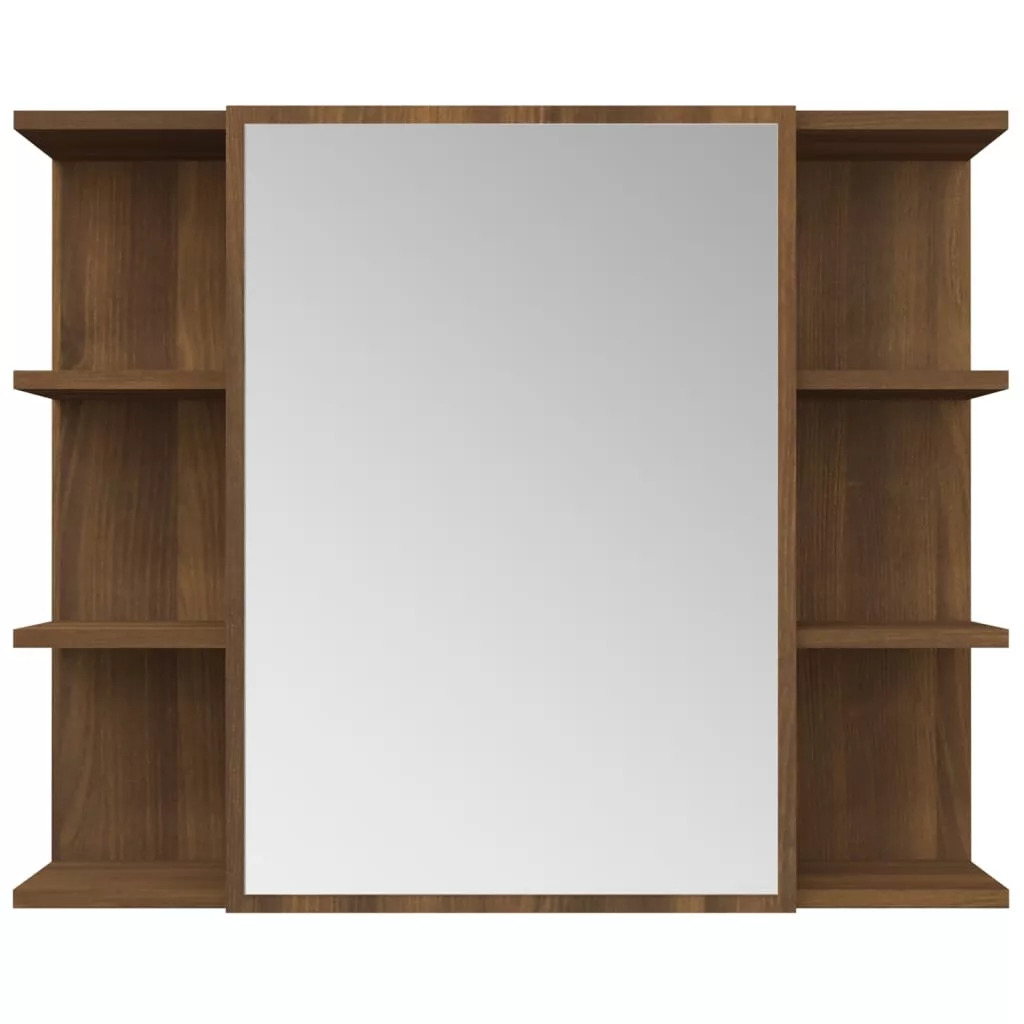 barna tölgyszínű szerelt fa tükrös szekrény 80 x 20,5 x 64 cm