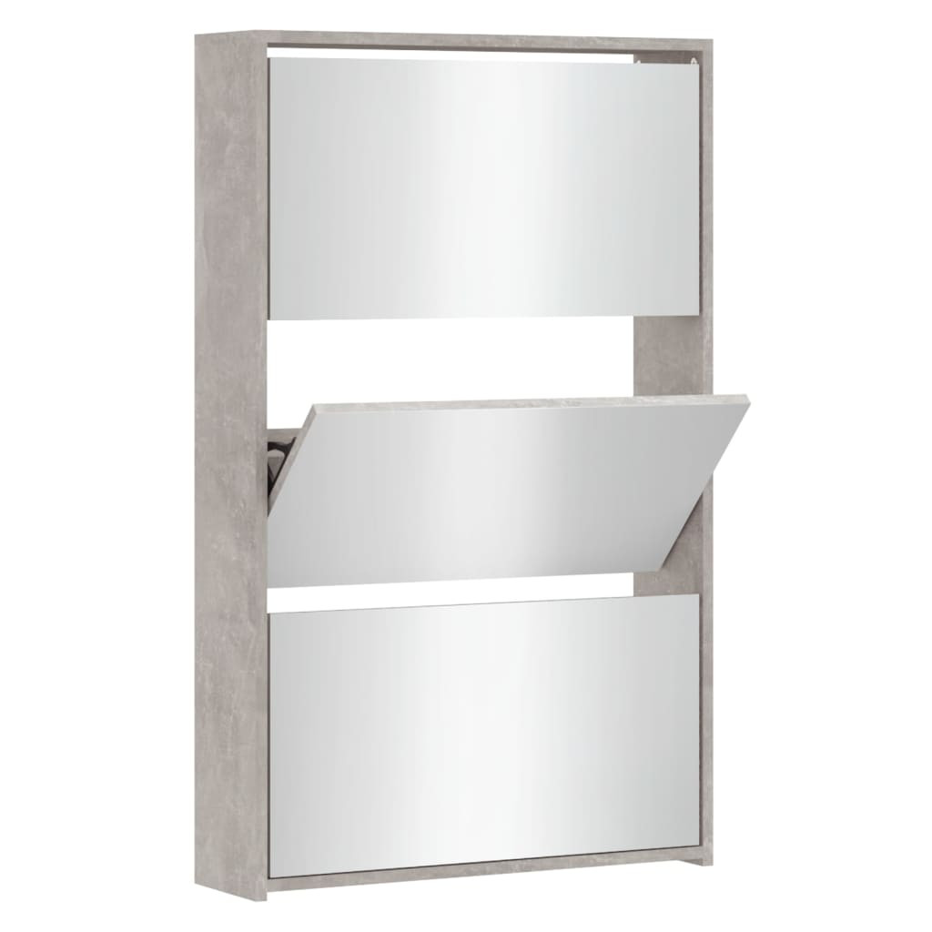 betonszürke 3 szintes cipőszekrény tükörrel 63 x 17 x 102,5 cm