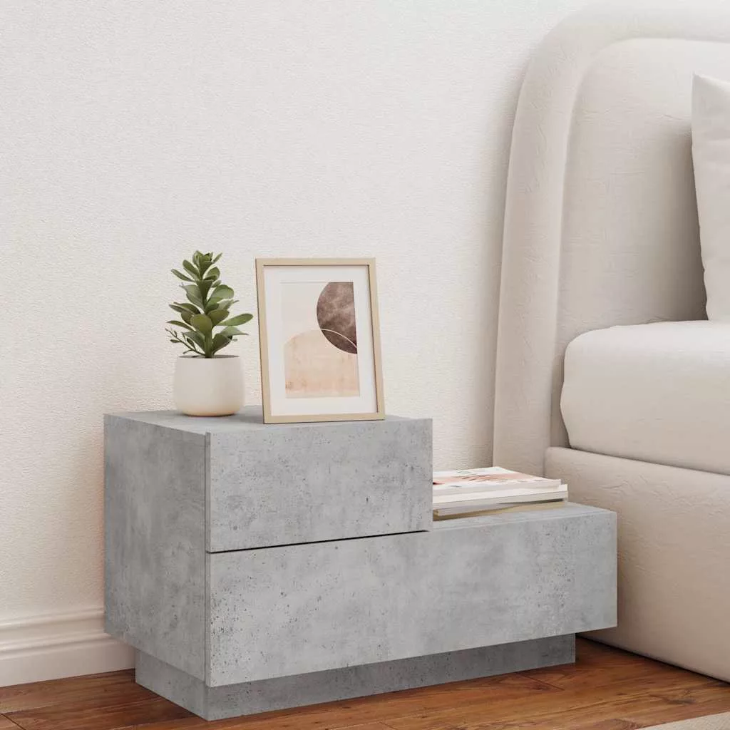 betonszürke éjjeliszekrény LED-fényekkel 70x36x40,5 cm