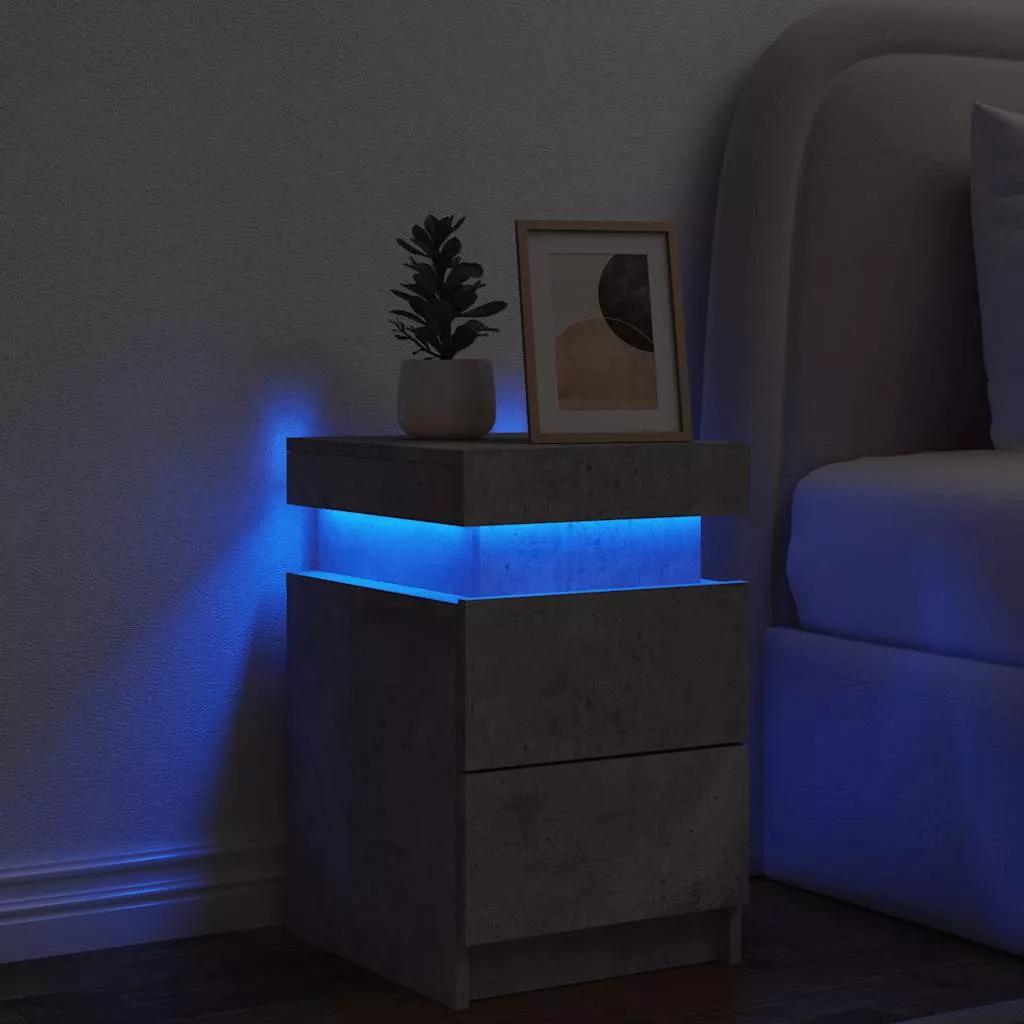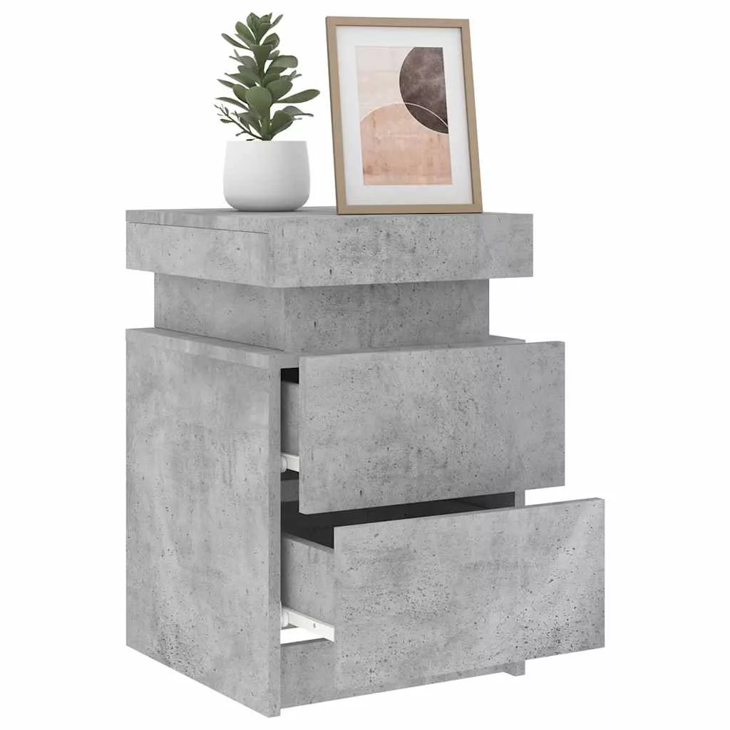 betonszürke éjjeliszekrény LED-világítással 35 x 39 x 55 cm