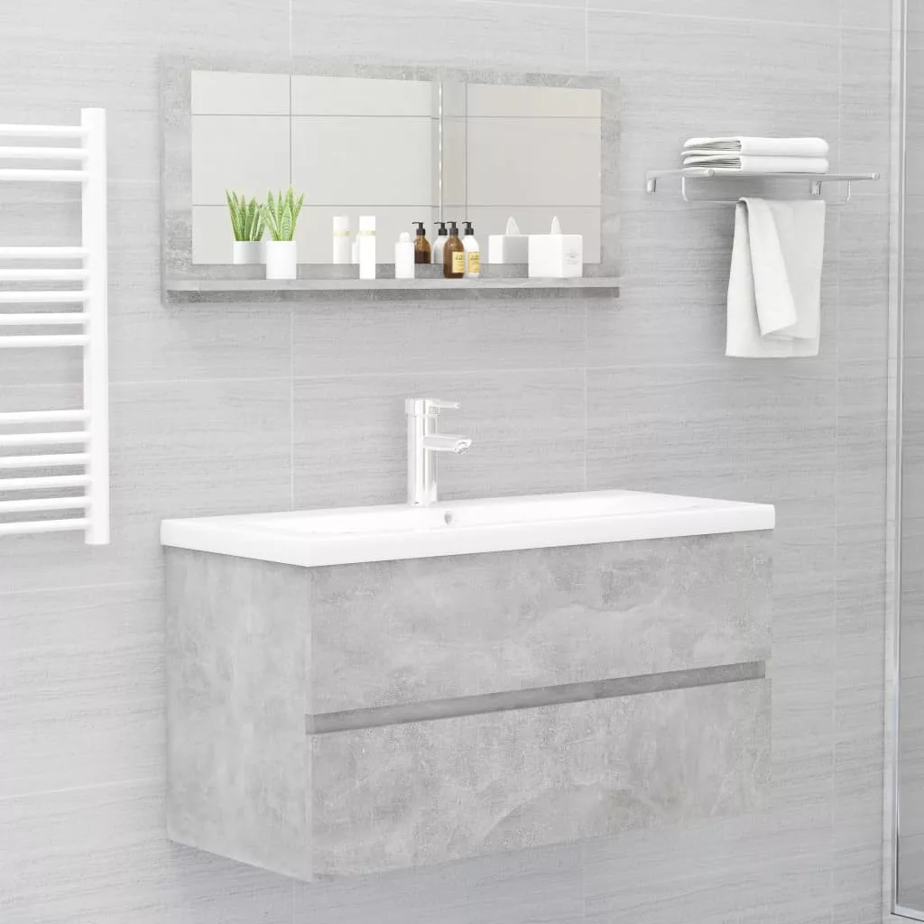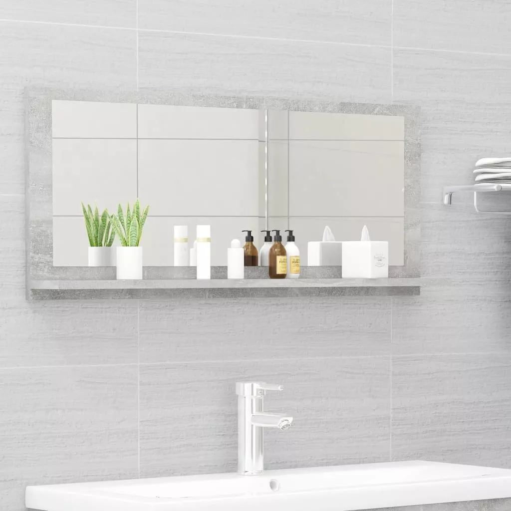 betonszürke forgácslap fürdőszobai tükör 90 x 10,5 x 37 cm