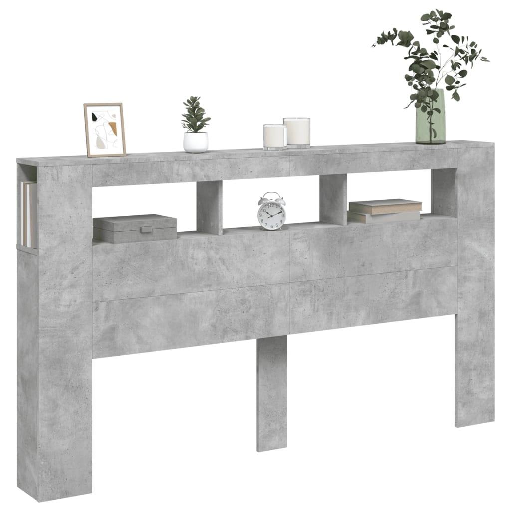 betonszürke szerelt fa LED-es fejtámla 180x18,5x103,5 cm