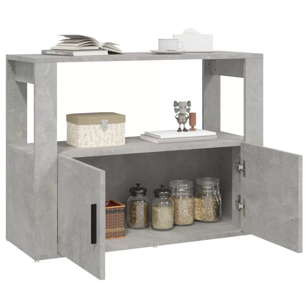 Ez a klasszikus tálalószekrény nemcsak praktikus, de egy csipetnyi eleganciát is csempész nappalijába. Erős anyag: A szerelt fa kivételes minőségű, sima felületű, szilárd, stabil, és ellenáll a nedvességnek. Bőséges tárolóhely: Ez a tálalószekrény polccal és ajtókkal lett ellátva, amelyek lehetővé teszik a különféle tárgyak, például könyvek rendezett tárolását, és megóvják őket a portól. Masszív felső lap: A könyvszekrény felső lapja ideális dísztárgyak, például képkeretek vagy cserepes növények elhelyezésére. Figyelem:A dőlés megakadályozása érdekében a terméket a mellékelt tartóelem segítségével rögzíteni kell a falhoz.Megjegyzés:Az egyszerű összeszerelés érdekében minden termékhez mellékelünk összeszerelési útmutatót.