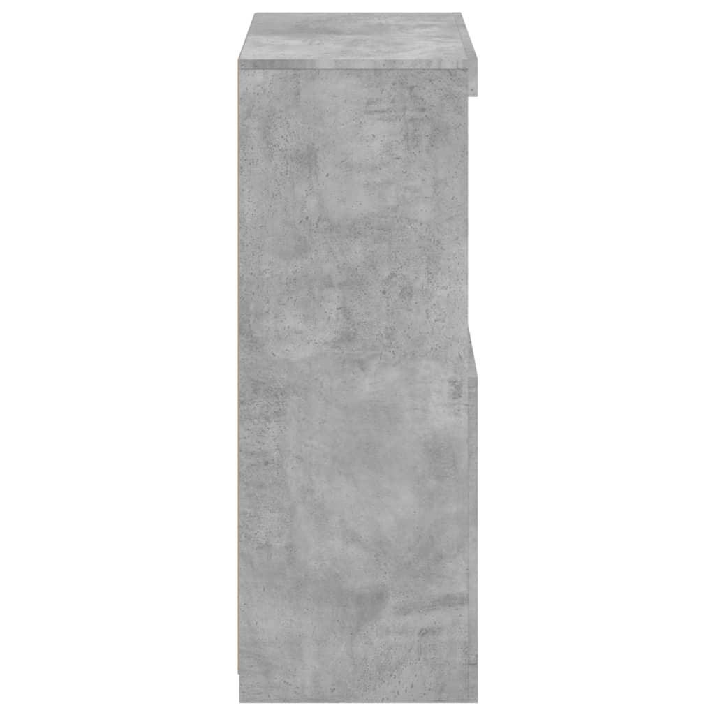 betonszürke szerelt fa tálalószekrény LED-világítással