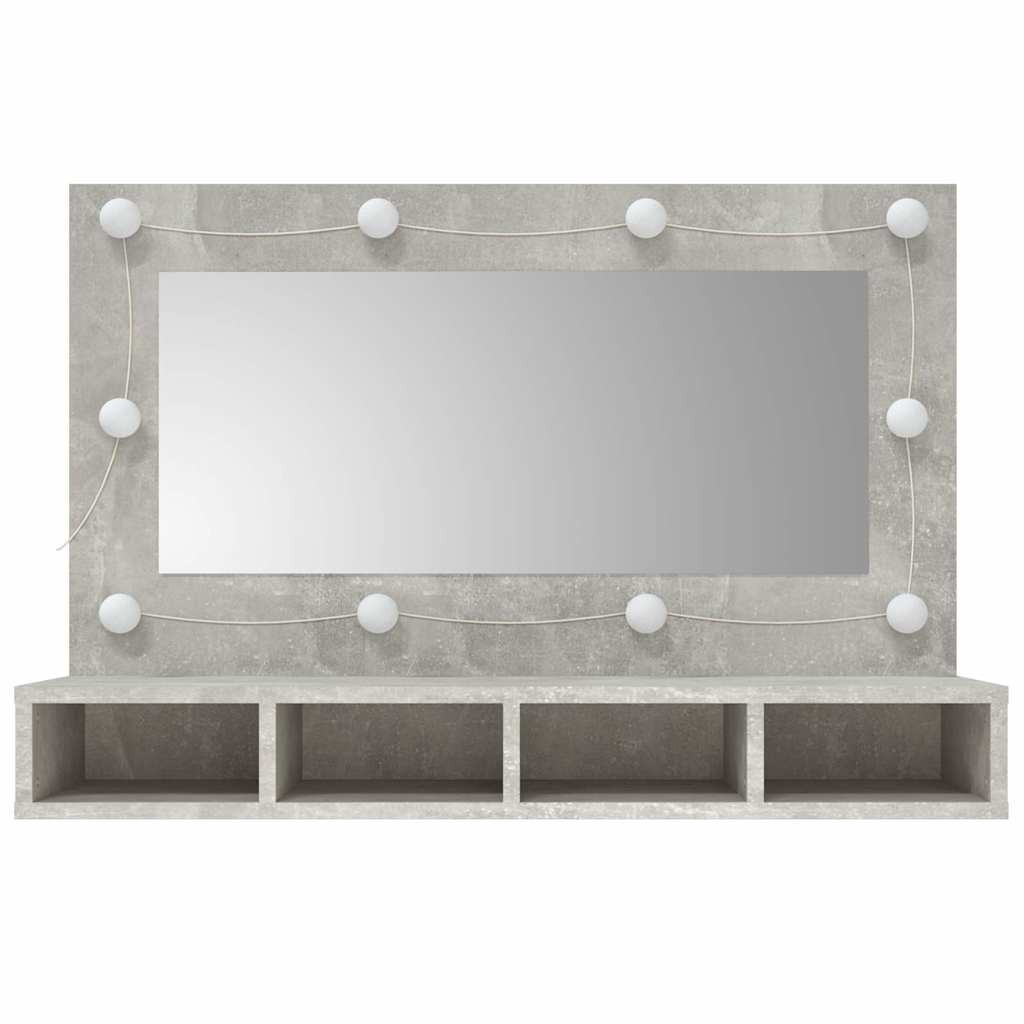 betonszürke tükrös szekrény LED-ekkel 90 x 31,5 x 62 cm