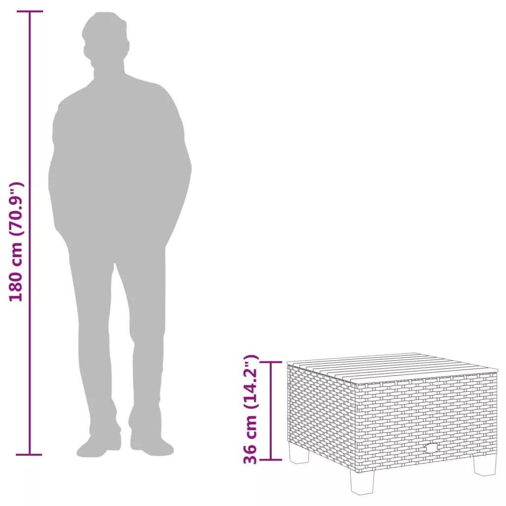 Gyűljetek össze e kerti asztal körül egy csésze kávéra, vagy beszélgessetek családotokkal és barátaitokkal a kertben, a hátsó udvarban vagy a teraszon! Tartós anyag: A PE rattan, más néven polirattan, egy erős, kevés karbantartást igénylő szintetikus anyag, amely úgy néz ki, mint a természetes rattan. Könnyű, könnyen tisztítható, és tartóssága és időjárásálló tulajdonságai miatt gyakran használják kültéri bútorokhoz.Stabil és könnyen tisztítható asztallap: Ennek a kerti asztalnak akácfa teteje van, amely masszív, tartós és nedves ruhával könnyen tisztítható.Moduláris kialakítás: Ez a kerti kanapé egy társalgógarnitúra részeként készült, de különálló kanapéként is használható. Kombinálhatod más moduláris részekkel, például asztallal, lábtartóval és egyéb kanapéelemekkel, hogy létrehozd a saját személyes pihenőgarnitúrádat!Robusztus és stabil váz: A porszórt acélváz biztosítja, hogy a kerti bútor erős és stabil legyen a mindennapi kültéri használatra. Jó tudni:Annak érdekében, hogy kültéri bútorod szép maradjon, javasoljuk, hogy vízálló huzattal védd meg. Maximum 110 kg ülésenként. Ügyeljen a nyílt tűz és más erős hőforrások veszélyére a termék közelében.