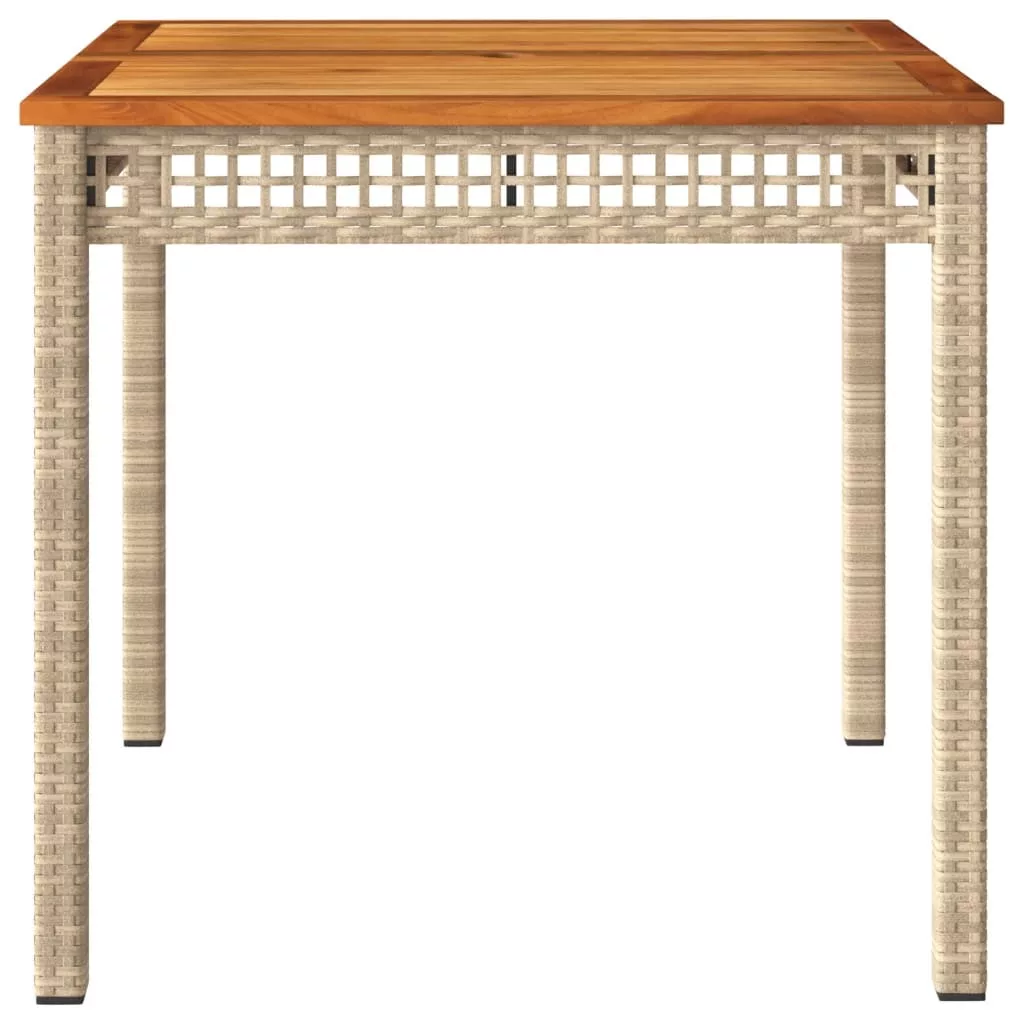 Gyűljön össze családjával és barátaival a kertben, az udvaron vagy a teraszon egy étkezésre vagy csevegésre kerti asztalunk körül! Tartós anyag: A PE rattan, más néven polyrattan, egy erős, kevés karbantartást igénylő szintetikus anyag, amely úgy néz ki, mint a természetes rattan. Könnyű, könnyen tisztítható, tartóssága és időjárásálló tulajdonságai miatt gyakran használják kültéri bútorok készítéséhez.Stabil és könnyen tisztítható asztallap: A kerti asztal akácfa lapja masszív, tartós és nedves ruhával könnyen tisztítható.Robusztus és stabil váz: A porszórt acél váz biztosítja, hogy a kerti bútor erős és stabil legyen a mindennapi kültéri használathoz. Jó tudni:A kültéri bútor szépségének megőrzése érdekében javasoljuk, hogy vízálló huzattal fedje be.