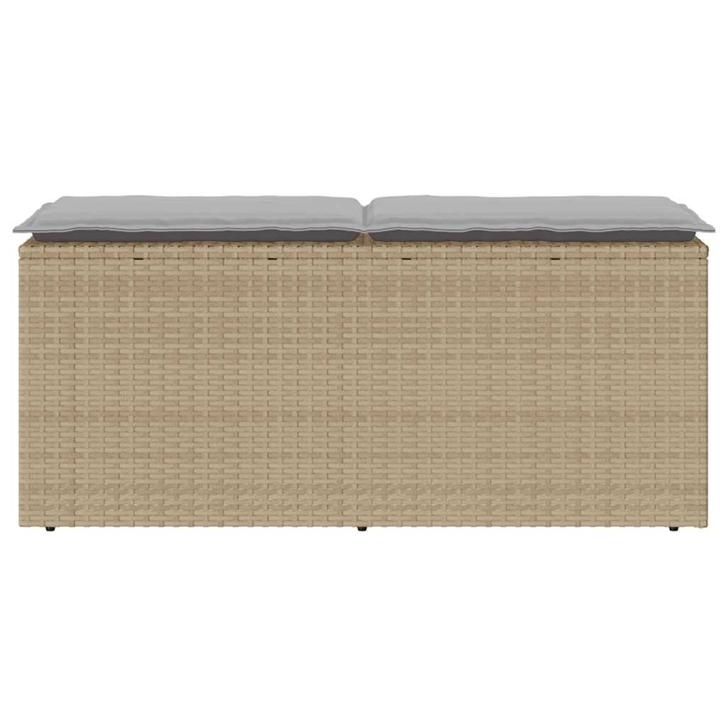 bézs polyrattan kerti pad párnával 110x40x44 cm