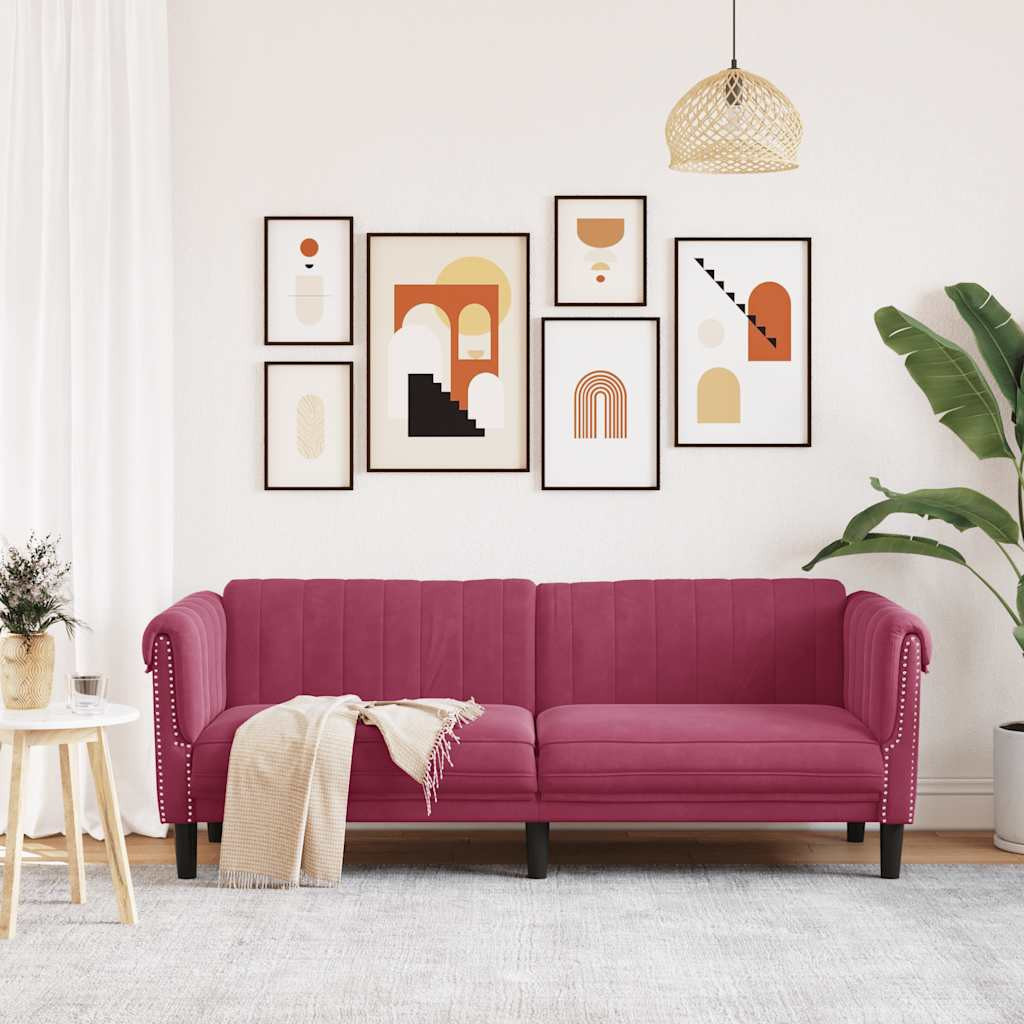 Ez a 3 személyes kanapé kiváló hely a beszélgetéshez, olvasáshoz, tévézéshez vagy akár pihenéshez. Célja, hogy otthona fókuszpontja lesz. Puha bársony: A bársony egy puha, fényűző anyag, amely sűrű, egyenletesen vágott sima szálairól ismert. A bársony anyag jellegzetesen puha, így kényelmes tapintású.Kényelmes ülőélmény: A kanapé rendkívül kényelmes a vastagon párnázott ülésnek, karfának, és háttámlának köszönhetően.Tömör lábak: A kárpitozott fotelt erős lábak tartják, amelyek stabilitást, biztonságot, és szilárdságot biztosítanak.Szemet gyönyörködtető dizájn: Egyszerű, de modern dizájnjával ez a nappali ülőgarnitúra figyelemfelkeltő darab lesz a szobájában. Maximum 110 kg ülésenként. Ügyeljen a nyílt tűz és más erős hőforrások veszélyére a termék közelében.