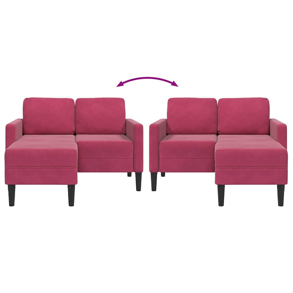 borvörös bársony 2 üléses kanapé L-alakú kanapéval 125 cm