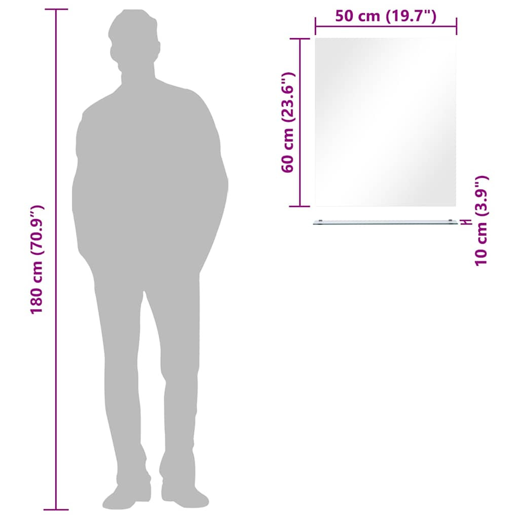 edzett üveg falitükör polccal 50 x 60 cm